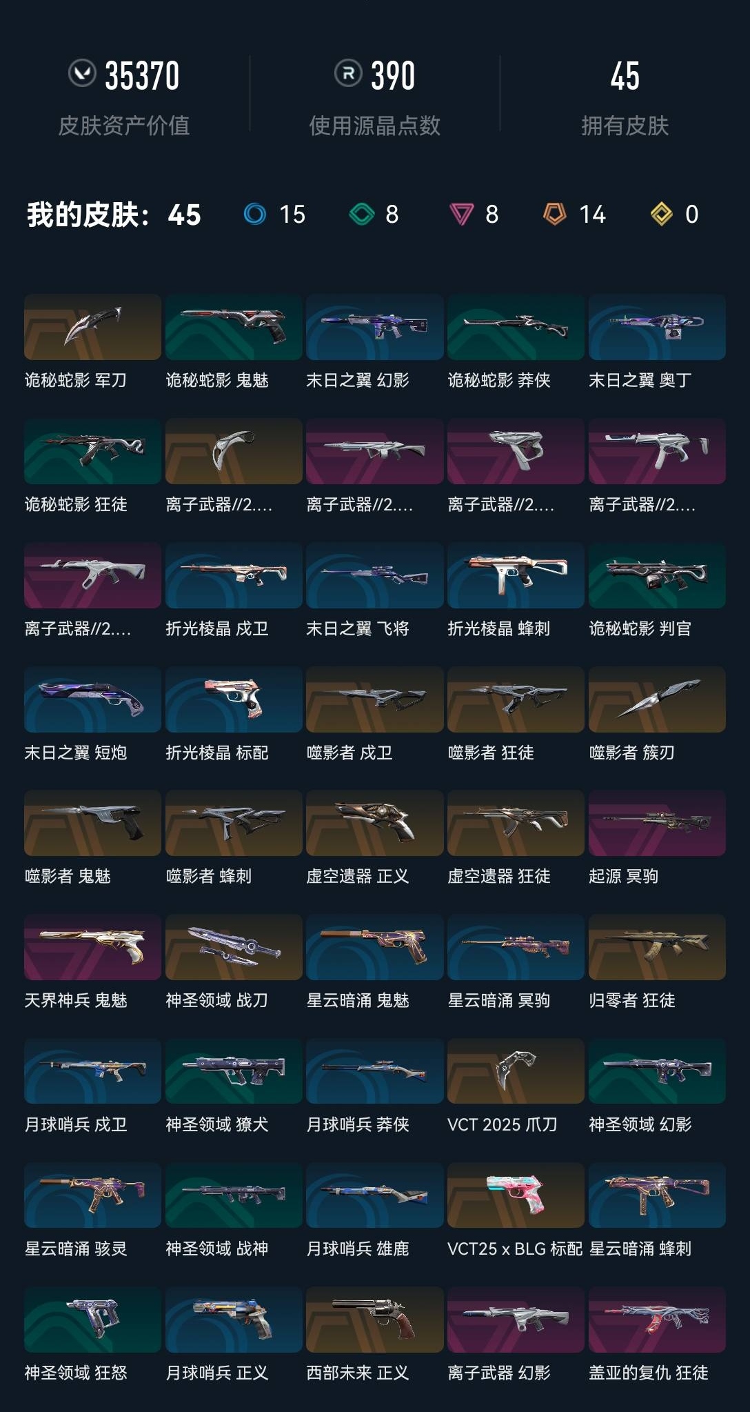 喜欢本账号请点 ☆收藏☆ 方便下次租用,谢谢光临惠顾! 上号出现令牌问题,先切换至短信,在短信界面等待3分钟左右点击确认,如果上不去请关闭上号器重新上号点确认!感谢配合!用外挂,恶意发言,在游戏内骗人等违规操作,拉黑全网公示,使用外挂脚本导致非正常游戏封号的,在平台提取租客实名卩地址,本账号经过网络财产备案,一经发现直接报警处理立案追责,根据账号价值全额赔偿感谢支持;VCT 2025 爪刀,盖亚的复仇 狂徒,虚空遗器 狂徒,噬影者 狂徒,离子武器//2.0 狂徒,起源 冥驹,西部未来 正义,