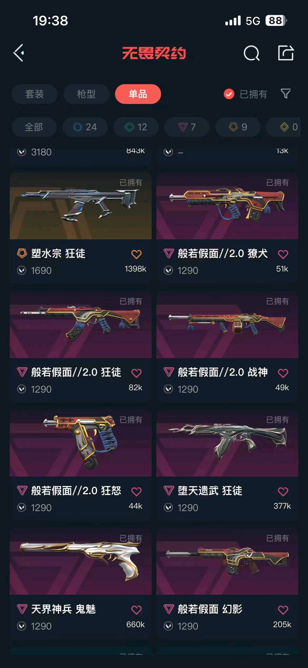 首页 > 租号大厅 > 无畏契约-wegame > wegame/wegame > 可排精品库存♈混沌ak侦查蝴蝶刀显卡爪刀丨恶鬼2.0套♈塑水宗狂徒♈堕天遗武狂徒