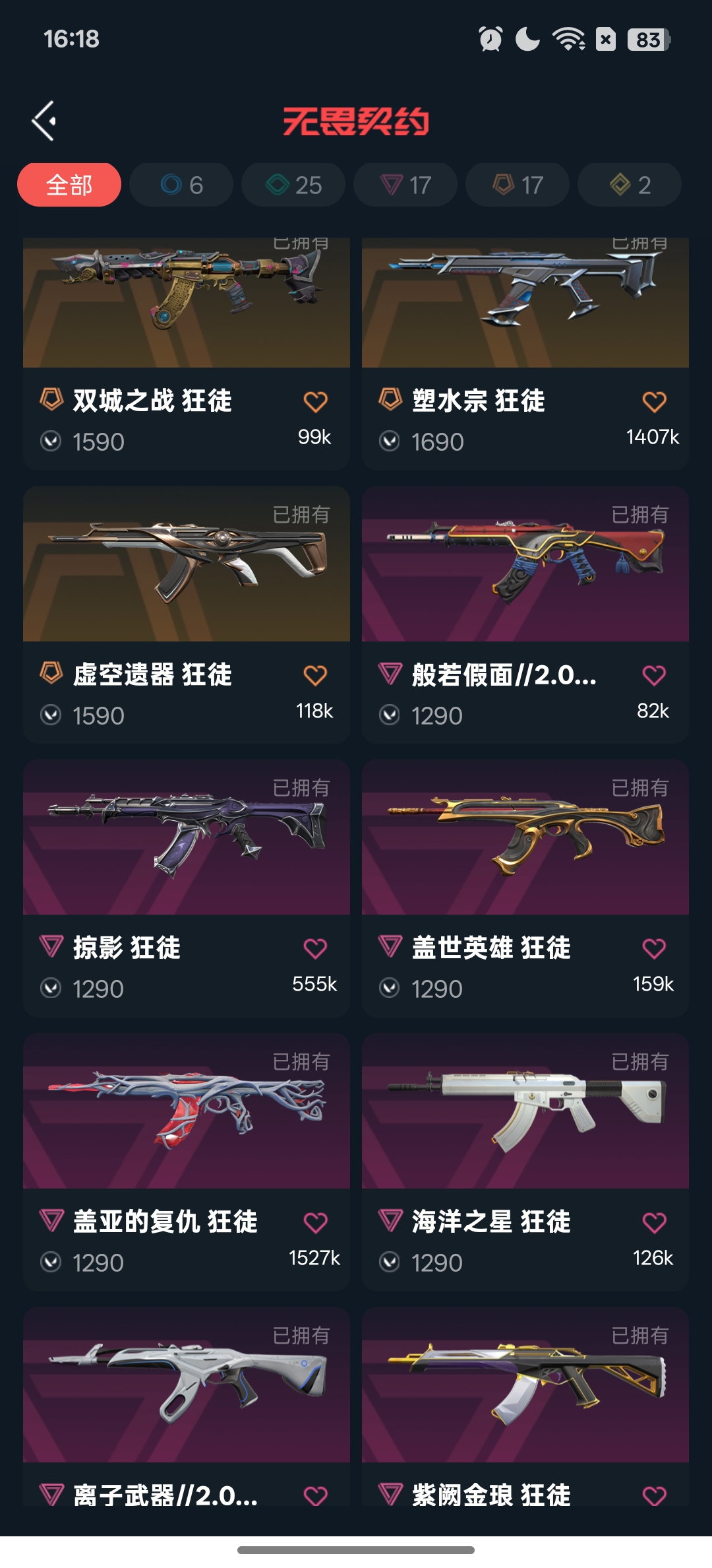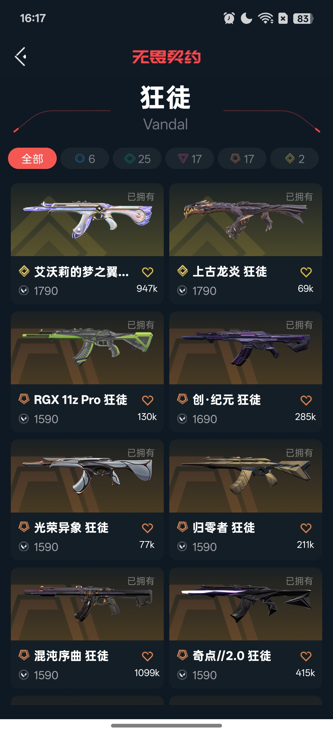 首页 > 租号大厅 > 无畏契约-wegame > wegame/wegame > 已备案禁止开挂❤️24w库存24冠军套双城套混沌套显卡套❤️爪刀剥皮刀镭切光荣艾沃莉狂徒电音戍卫