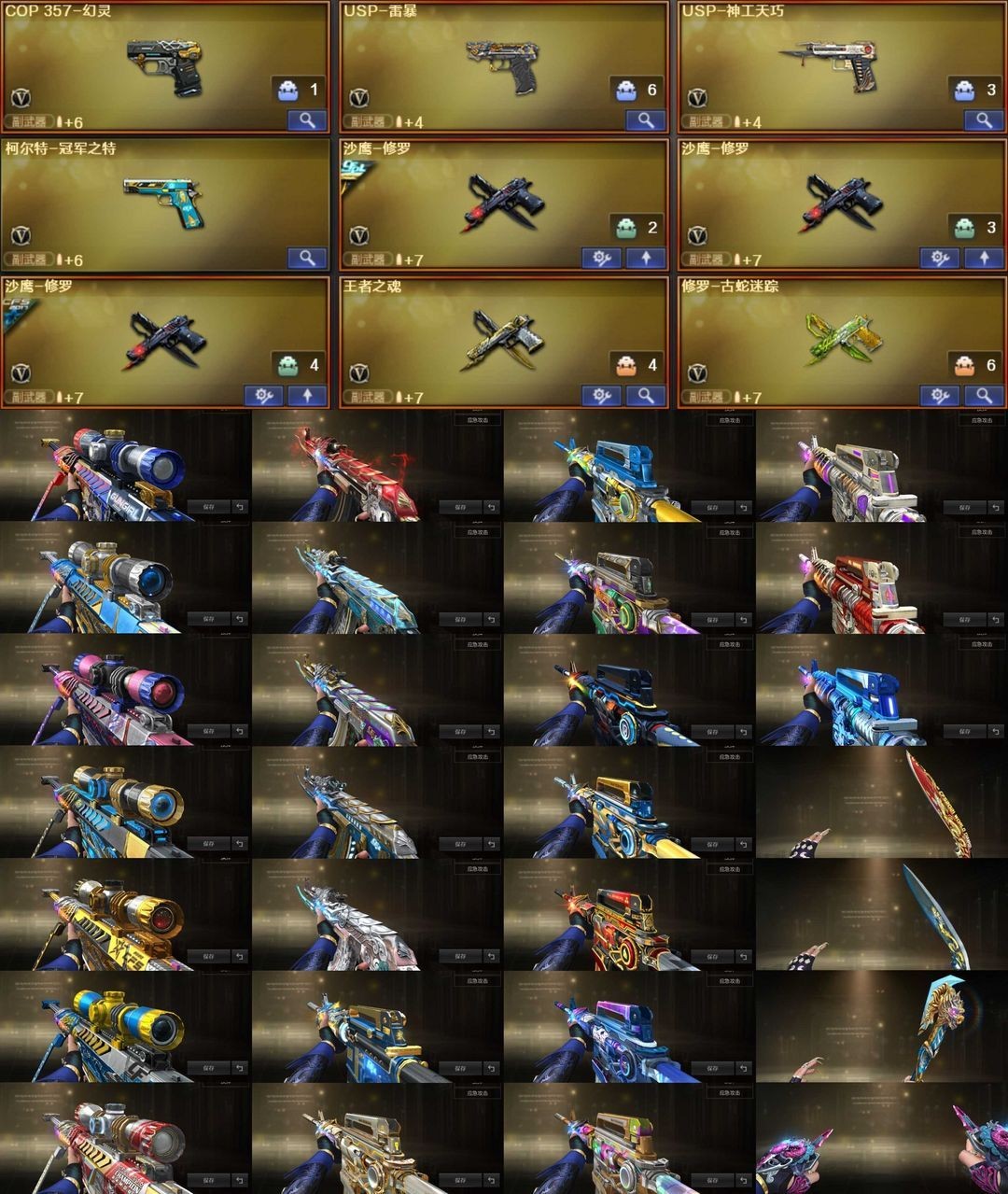 银翼星耀破浪蝶刃冠军薇特刃艾莉莎隼研鹰幻影天罚灵眸星神漫游八皮幻神星耀冠军白鲨全音效毒蜂蝴蝶炼狱鲨臂;USP-雷暴,柯尔特-无冕之王,炽芒蝶刃,Knife-冠军之刃,传说影煞,隼,电竞教官-云悠悠,