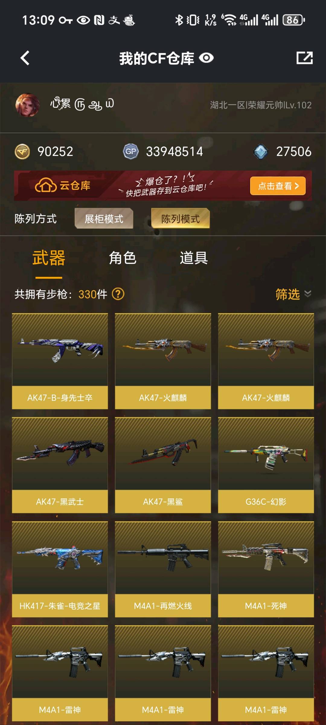 • 游戏区服:穿越火线 / 南部 / 湖北一区