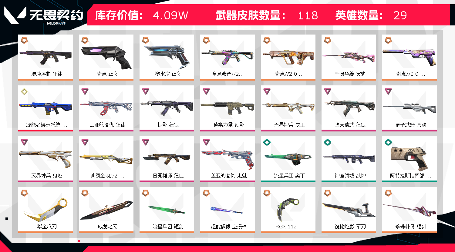 首页 > 租号大厅 > 无畏契约-wegame > wegame/wegame > 可排百皮全特效⚡显卡3.0爪刀威龙影刃⚡奇点2.0套⚡混沌序曲波普2.0⚡紫装全齐⚡电玩幻影