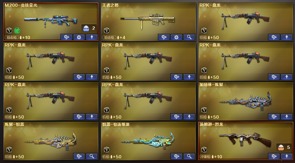 105V/2皮幻神/宠儿/竞技荣光套/QBZ03/6盘/6烈/6修罗/6烈火/USP雷暴/云悠悠;USP-雷暴,电竞教官-云悠悠,RPK-盘龙,QBZ03-金色蔷薇,M200-幻神,