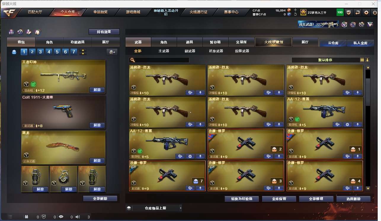 【m200幻神+usp雷暴】【王者幻神】【6盘龙 炼狱*2 6黑骑士 6烈龙 斯太尔蝴蝶】【qbz金色蔷薇】【hk417朱雀】【火麒麟+卡+even】【黑龙】【雷神+荣耀之魄+冠军之魄】【黑骑士*4+冠军之势】【毁灭+卡+ag15冠军】【极光】 【武器:雷霆 堕天神 王者之魄 王者冰魄 海王*2 天龙 王者之怒 】 【13手呛:修罗*6 天神*3 cop雷霆 cop堕天神*2 】 【20刀具:屠龙*7 龙啸 擎天*3 麒麟刺*3 尼泊尔雷霆 王者之击 王者之刺 】 【16雷套:雷霆雷*5 雷暴雷*4 堕天神雷*7】 【小人呛:火麒麟绝迹 火麒麟灵狐】 【音效卡: 毁灭音效卡 火麒麟音效卡】 【四防角色:王者魅影 】;USP-雷暴,RPK-盘龙,QBZ03-金色蔷薇,M200-幻神,