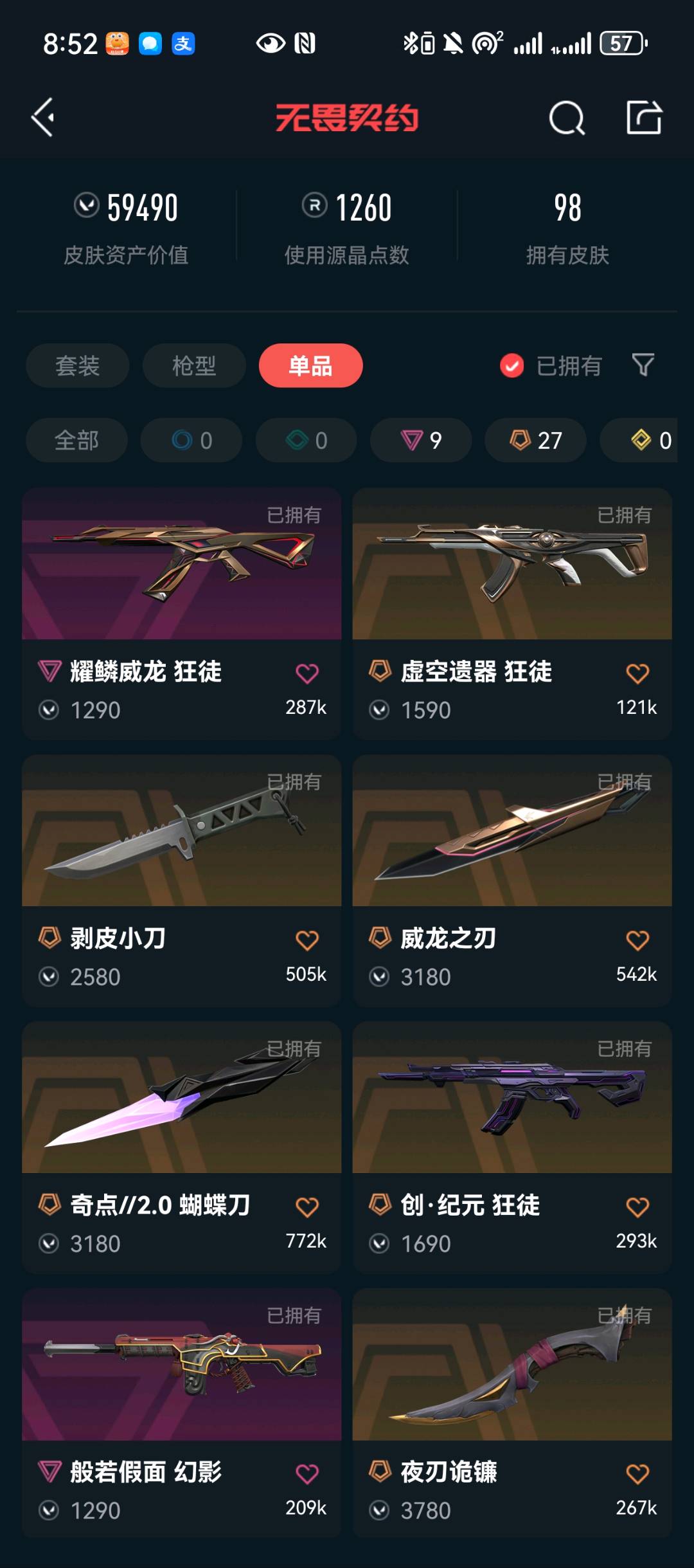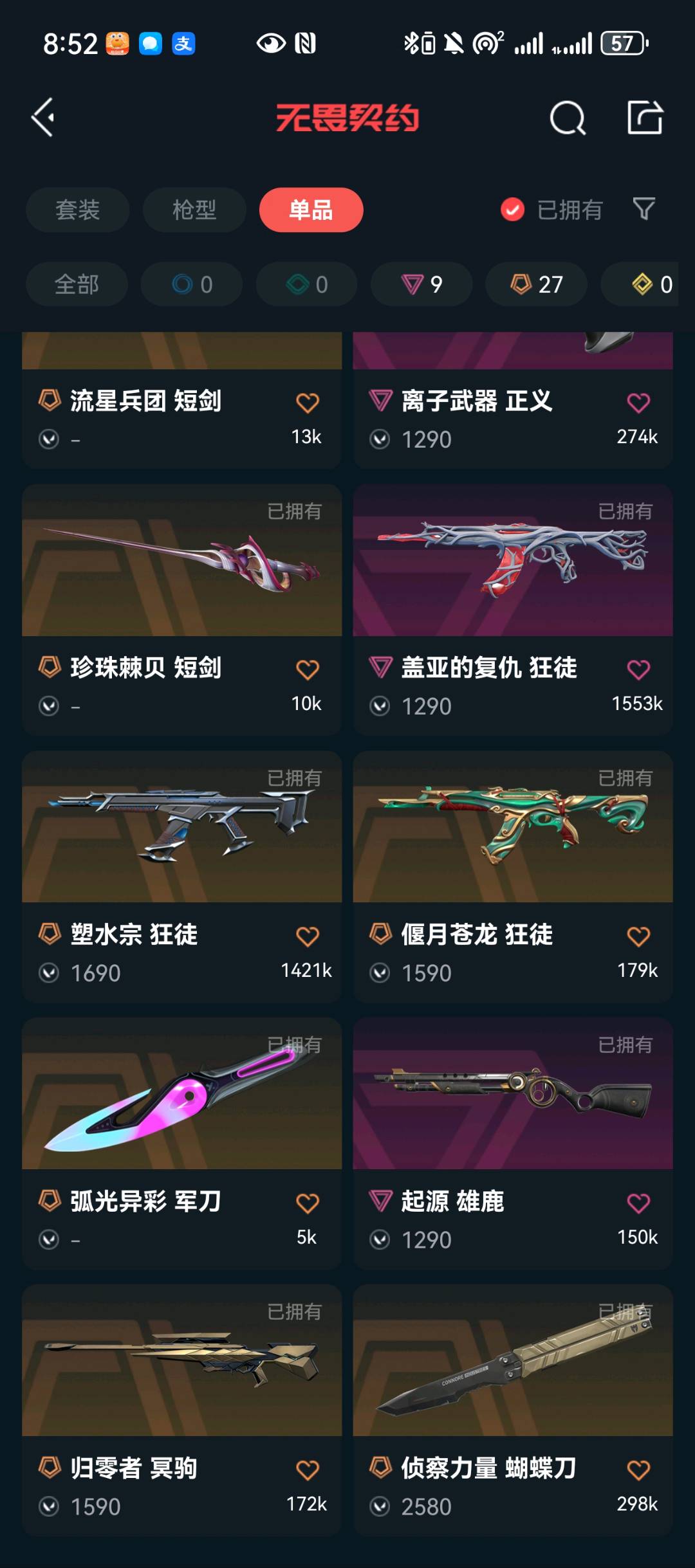 首页 > 租号大厅 > 无畏契约-wegame > wegame/wegame > 混沌套 盖亚/纪元/双城/塑水狂徒 剥皮小刀 全套侦查 离子正义 紫金刀 落英飞旋