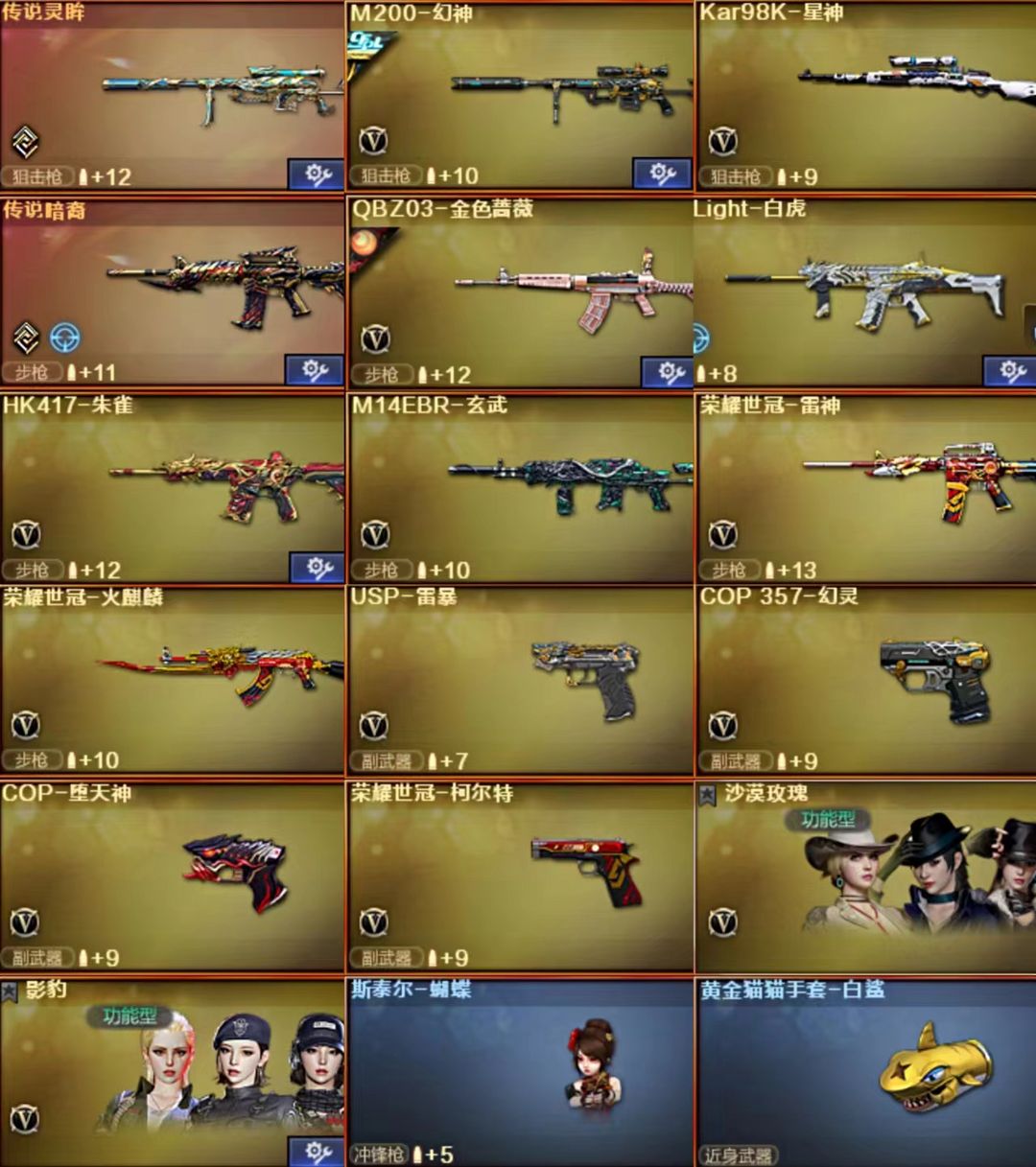 传说灵眸幻神音效冠军之幻USP雷暴COP幻灵98K星神裁决音效金色蔷薇白虎沙漠玫瑰六烈龙
