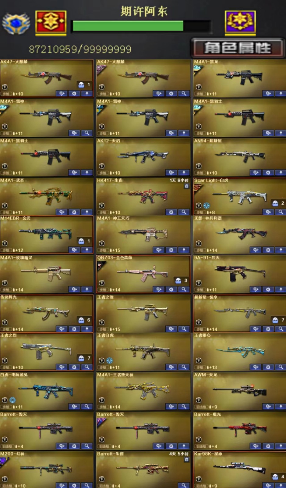 >>>>>>毁号,涉及毁坏虚拟财产罪及计算机安全罪,请文明游戏素质游戏,让我们共建美好租号平台>>>>>> 本游戏账号:英雄武器66个; 王者武器9个。 装备不多,但是主武器、副武器、近身武器够用 拥有完美游戏体验。特殊装备有:龙啸-堕天神、HK417-朱雀、M200-幻神、麒麟刺、加特林-炼狱、AK47-火麒麟、王者之锋、王者之幻、炫金黑龙、炫金雷神、王者之魂、王者之怒-觉醒版、迷迭香、王者-瞳-闭月羞花、王者之瞳、堕天使、M200幻神音效卡、98K星神音效卡、毁灭音效卡、金色蔷薇音效卡、雷神音效卡、火麒麟音效卡、黑骑士音效卡,随意畅选。 注意事项: A.游戏过程中请不要恶意挂机或者不文明发言 B.恶意挂机、顶号等行为将被拉黑无法再次下单 C.进入游戏后中途请勿退出登陆,否则无法再次上号 |||||||||喜欢本账号请点 ☆收藏☆ 方便下次租用,谢谢光临惠顾|||||||||;USP-雷暴,柯尔特-冠军之特,炽芒蝶刃,沙漠玫瑰,电竞教官-云悠悠,晴雅,王者沙漠玫瑰,
