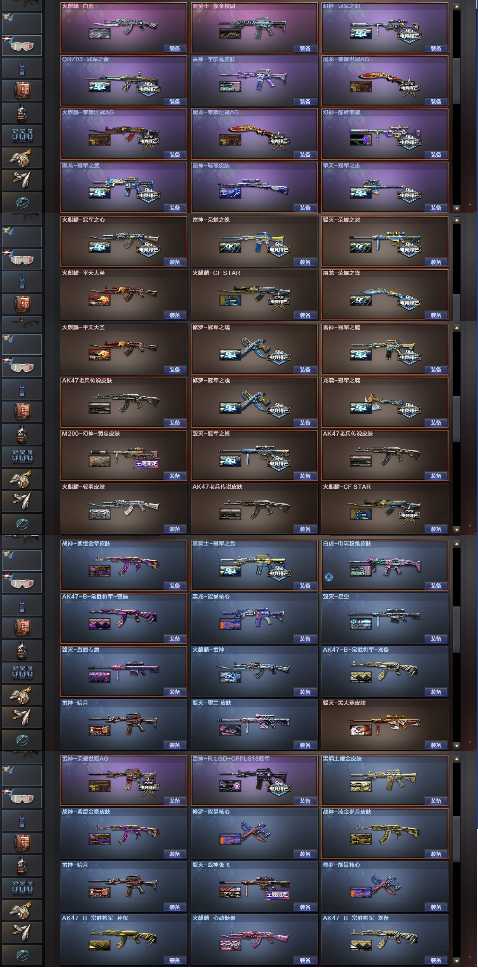 幻神-冠军之幻,幻神-黄忠,幻神-巅峰荣耀,雷神-荣耀之魄,雷神-荣耀世冠AG,雷神-冠军之魄,火麒麟-冠军之心,火麒麟-荣耀世冠AG,毁灭-荣耀之怒,毁灭-冠军之怒,黑骑士-冠军之势,龙啸-冠军之啸,星神-璀璨,荣耀之锋,冠军之击,黑龙-冠军之武,冠军之薇,冠军之特,冠军之刃