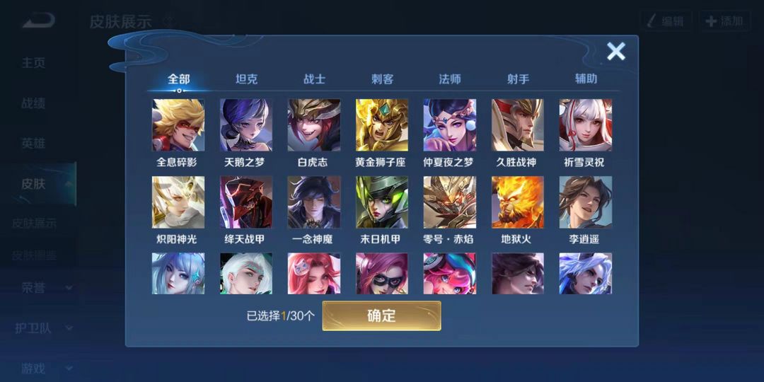 v10、509皮、刘备星传说时之思念、韩信荣耀典藏、瑶珍品传说大耳狗之梦、青丘·九尾、星域神启、画中仙、深海之息、天魔缭乱
