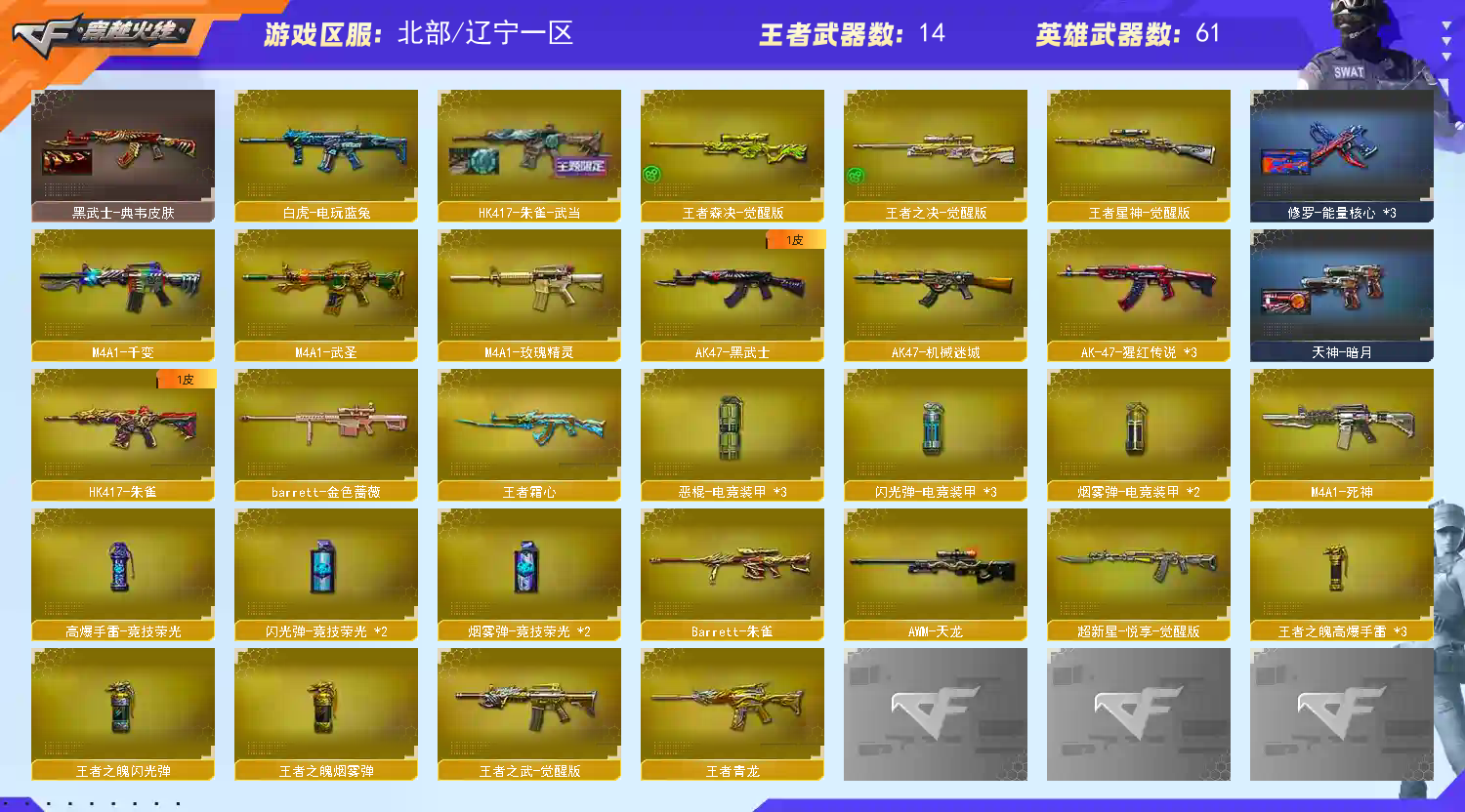 • 游戏区服:穿越火线 / 北部 / 辽宁一区