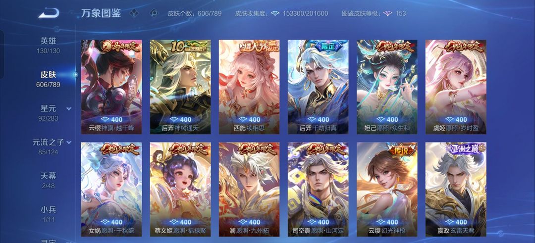 【天花板V10】535满皮满典藏/大乔时之奇旅新皮/虞姬星元/白金战甲/个性按键★多星元部件