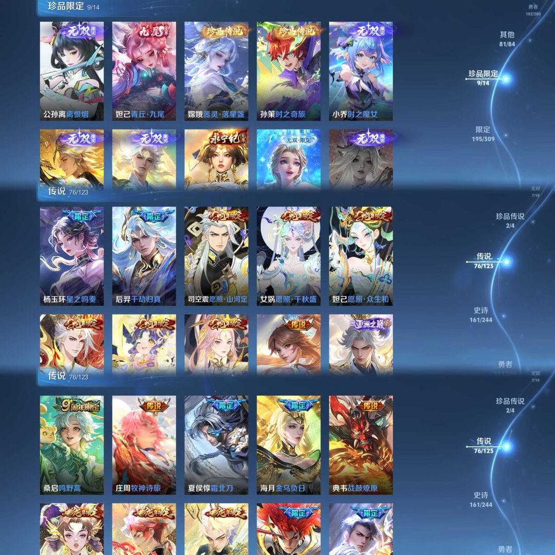 v10、512皮5水4无双、刘备星传说时之思念、72传说、愿照·九州拓、时之魔女、瑶无双、青丘、九尾、神器明辉仪