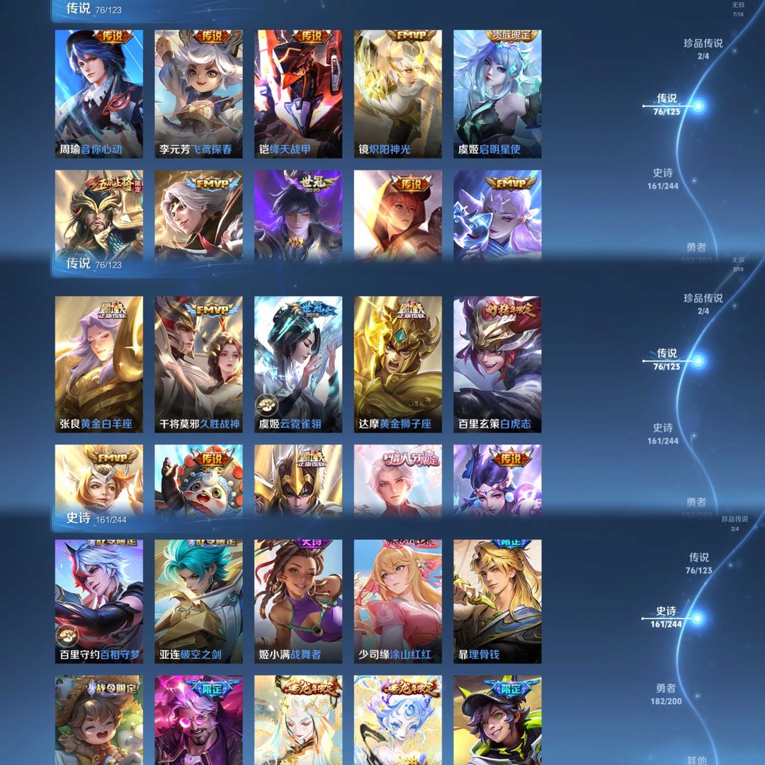 v10、509皮、刘备星传说时之思念、韩信荣耀典藏、瑶珍品传说大耳狗之梦、青丘·九尾、星域神启、画中仙、深海之息、天魔缭乱