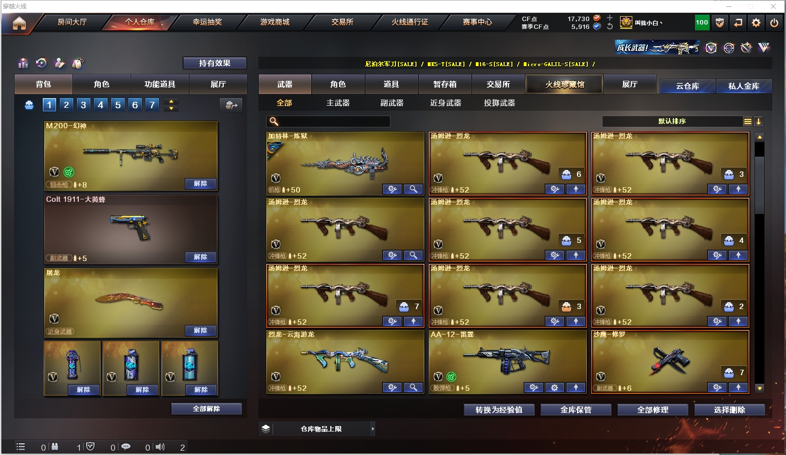 首页 > 租号大厅 > 穿越火线 > 电信区/江苏一区 > M200幻神|6烈斯太尔蝴蝶6盘龙炼狱|朱雀M4神工天巧王者青龙|2音效|生化爆破全装号
