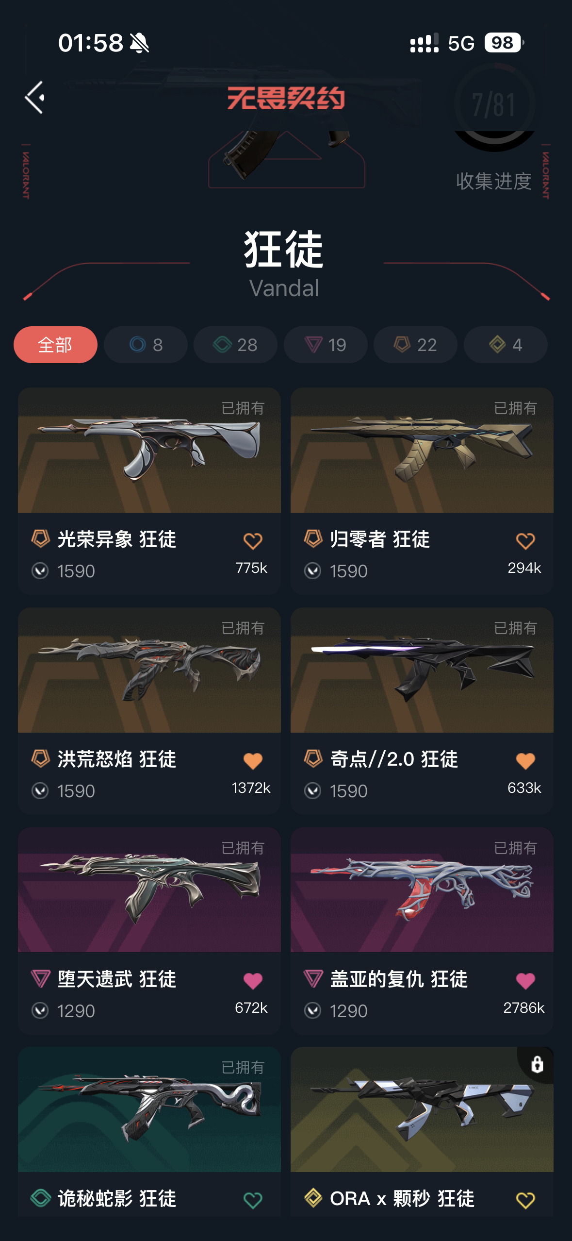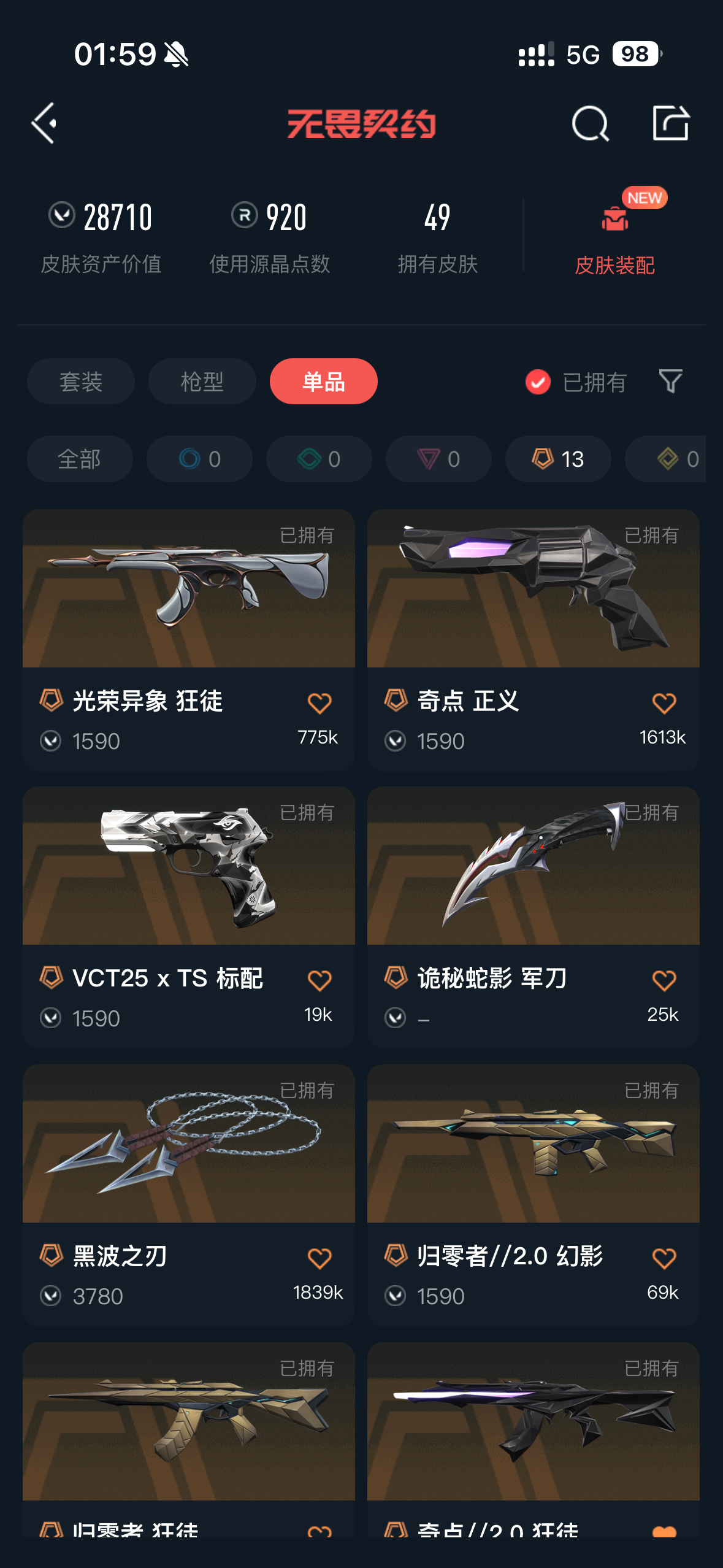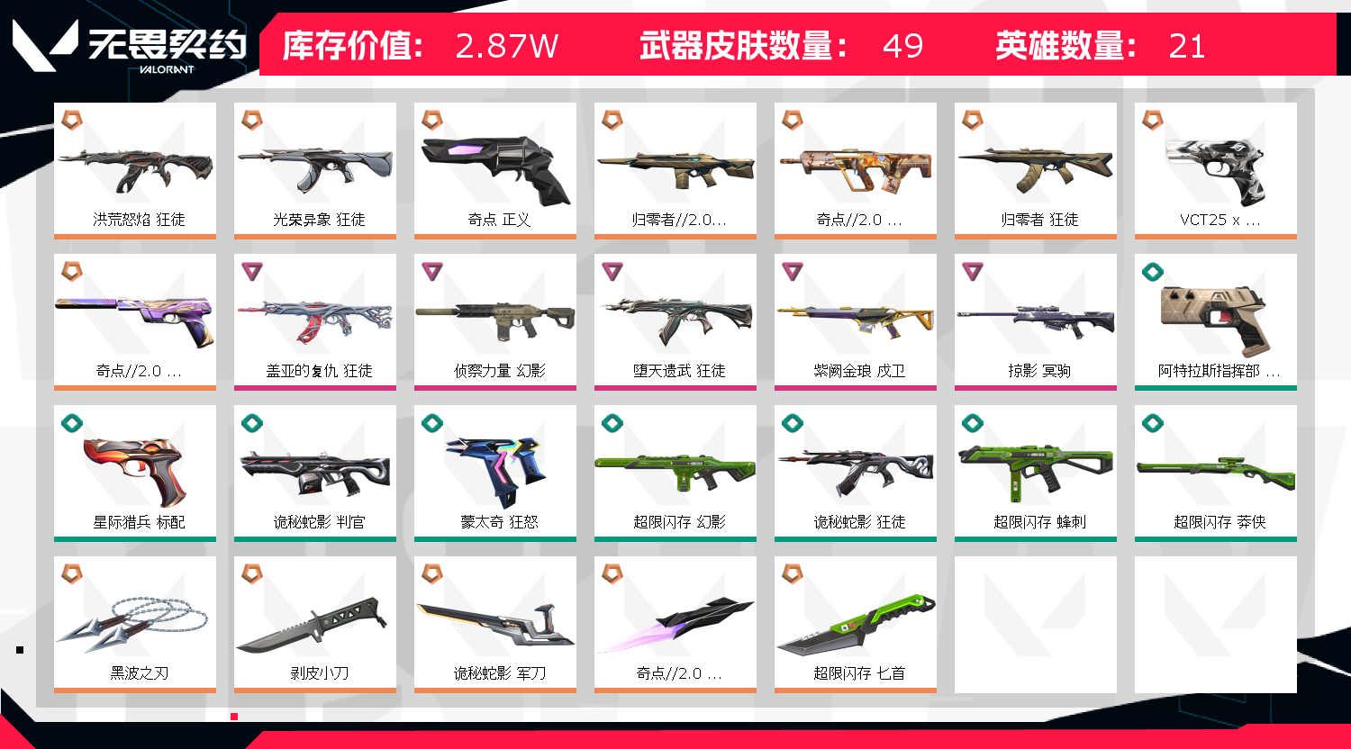 • 皮肤资产价值: 28710