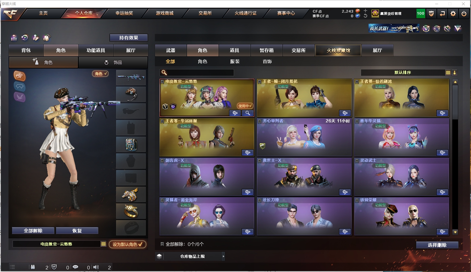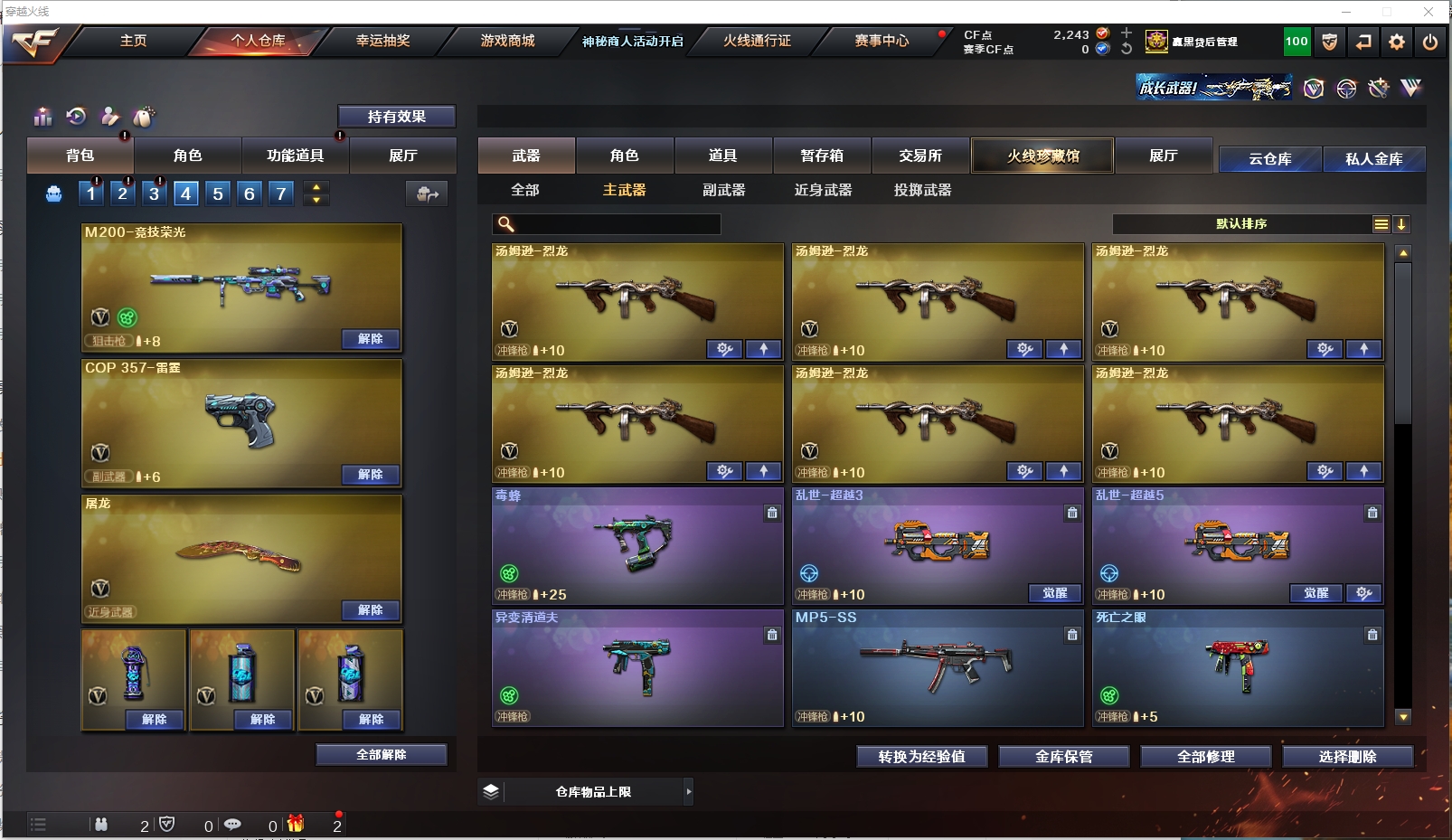 传说梦魇|G36C幻影M200幻神竞技荣光套装|6烈龙毒蜂异变清道夫4盘3炼狱|白虎音效 南部战区合区大区(江西一区、南方大区、湖南一区、湖南二区、湖北一区、湖北二区、广东一区、广西一区、广东二区、广东三区、广东四区)登录的时候选择南方大区 【编号】:HB331 【角 色】:云悠悠、王者瞳闭月羞花、王者葵惊若媥鸿、王者零华冠丽服、风暴女、猎狐者追月、灵狐花神、曼陀罗礼服、黑鹰X、蜀雪、娜塔莎、 【主 武】:传说梦魇、幻神竞技荣光、王者星神、6烈毒蜂、4盘3炼狱、白虎、幻影、火麒麟、黑龙X2、雷神(赵云)、黑骑士、无影、黑骑士、超新星、武圣、机械迷城、黑鲨、龙血X2、QB金色蔷薇、毁灭、Barrett金色蔷薇、激光毁灭者3、巨龙咆哮3、征服者、等各种活动武器 【副 武】:修罗(STAR)、天神(暗月)、武圣、COP雷霆、COP雷霆王者、柯尔特竞技荣光、大黄蜂 【近 身】:屠龙、龙啸、擎天(秘银)、麒麟刺、擎天竞技荣光、炽芒蝶刃等离切割者、破天斩魔剑、 【投 掷】:竞技荣光套装X2、音乐手雷、肥皂手雷、高爆手雷太极、精英手雷2、气球手雷X 【道 具】:白虎音效、铁骑玩偶、审判者玩偶、乔伊教练玩偶、浣熊玩偶、7个背包、AC(防弹衣+防弹头盔)、C4工具钳、手雷包、挑战弹夹、夺命之镰、变异宝贝、灵魂忍者、生化弹夹、防化服、机枪弹夹、冲锋枪弹夹、散弹枪弹夹、手枪弹夹、狙击枪弹夹、步枪弹夹;电竞教官-云悠悠,RPK-盘龙,QBZ03-金色蔷薇,G36C-幻影,Scar Light-白虎,