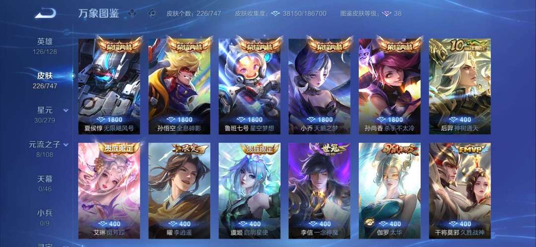 V10满典藏、3小兵皮493皮、最初的交响、愿照·九州拓、万物之道、怪盗基德、龙年限定全套、太华、白虎志、至尊宝、排月行、无双飞将、注意上不了号点号主协㫑