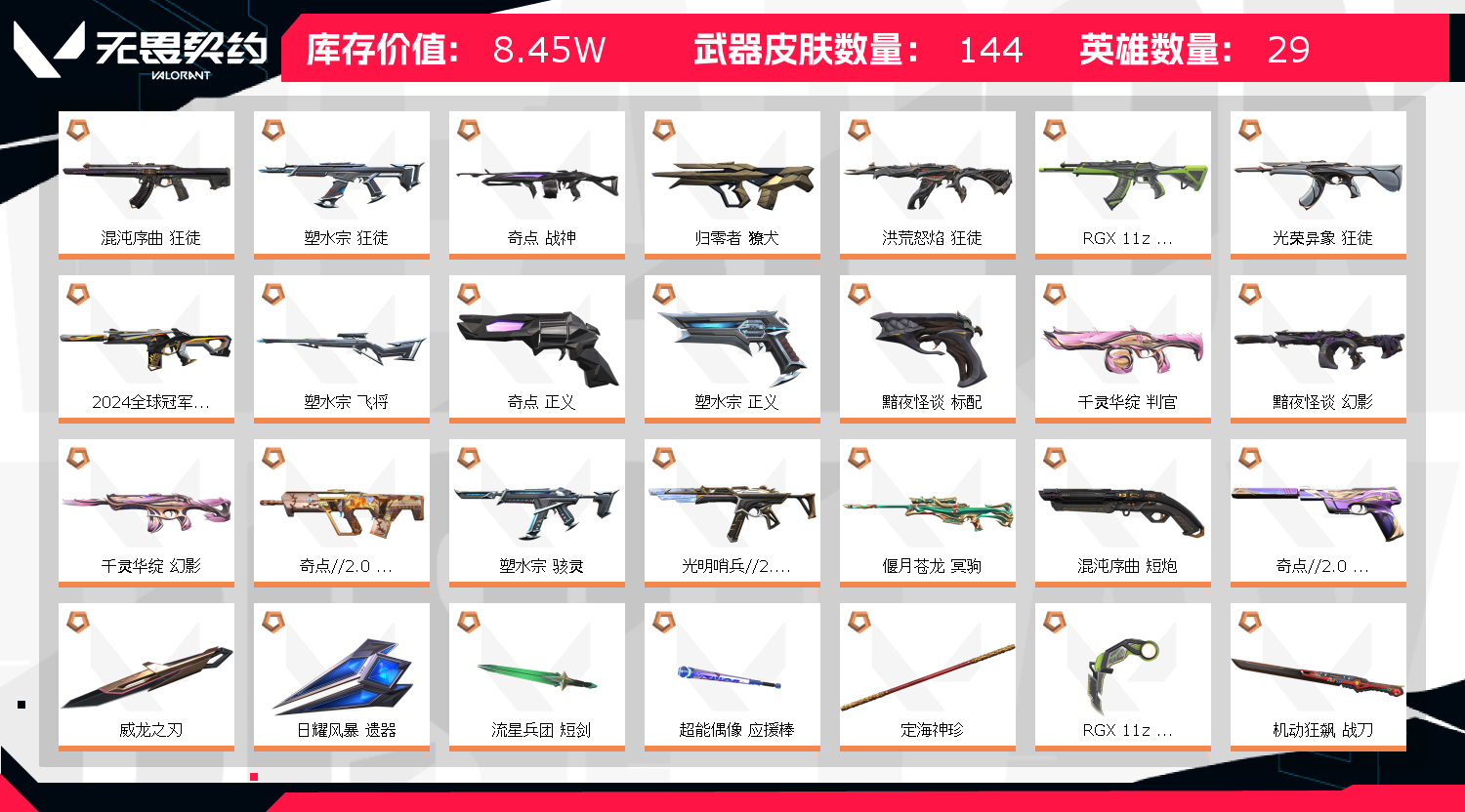 • 皮肤资产价值: 84530