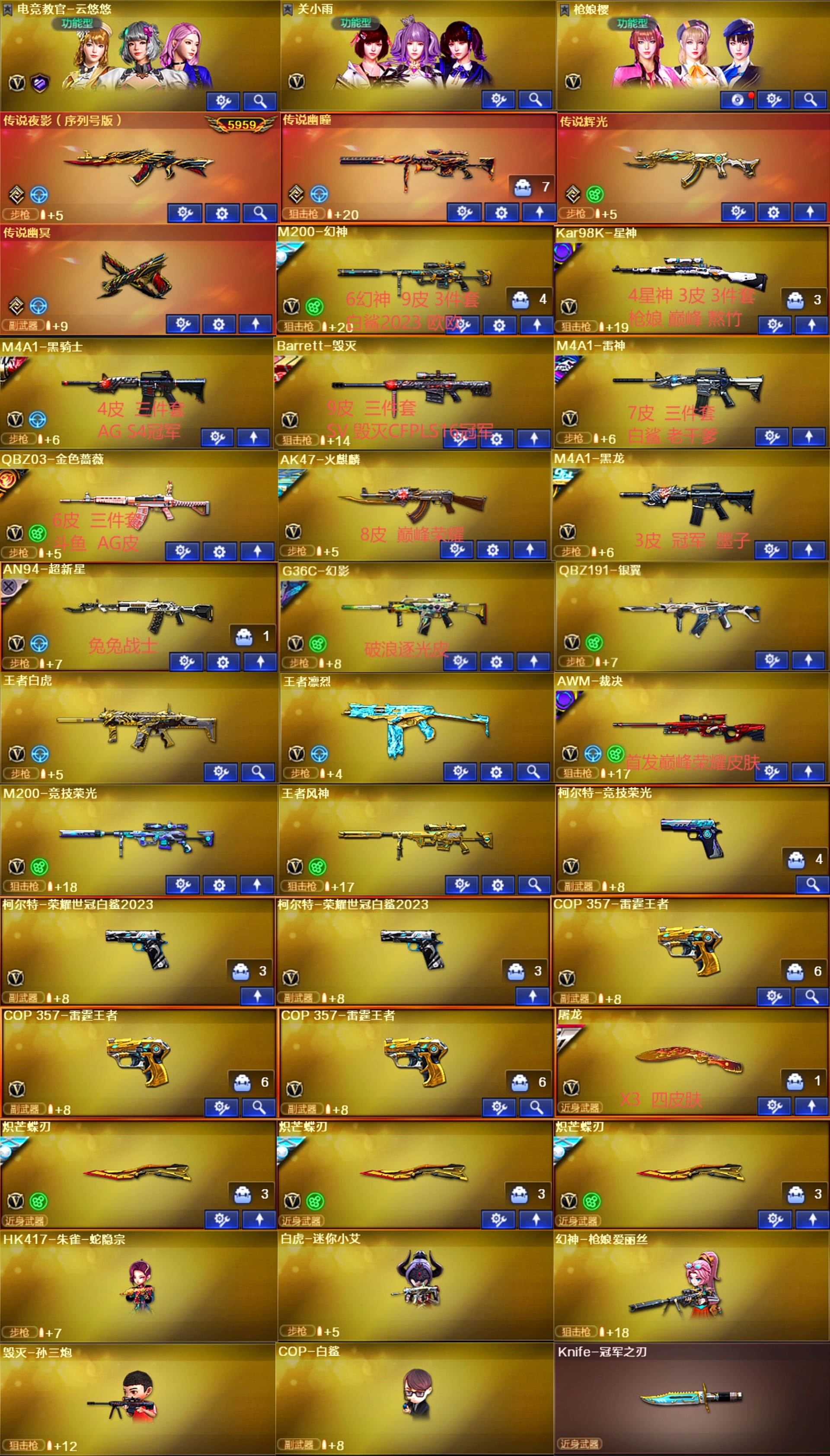账号开挂追责 后台看的一清二楚!!!! 不要有侥幸心理 开挂是犯罪行为!!!! 退排位 永久拉黑;柯尔特-荣耀世冠白鲨2023,传说幽冥,炽芒蝶刃,Knife-冠军之刃,隼,电竞教官-云悠悠,QBZ03-金色蔷薇,