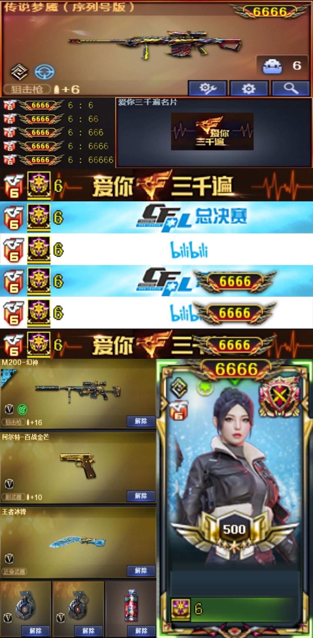 可以打字❤️全服唯一最权威单字ID也是全网最贵ID(vip6 ID6 序列号6666完全一致)连起来6个6 全部都是6❤️全服最顶的名片(爱你三千遍)❤️物以稀为贵 单数字非常尊贵稀有且价格远超单字全网最贵❤️不要退排位 退排位拉黑 ❤️一位数字 个位数字 单走一个6❤️;柯尔特-无冕之王,USP-雷暴王者,炽芒蝶刃,隼,RPK-盘龙,QBZ03-金色蔷薇,G36C-幻影,