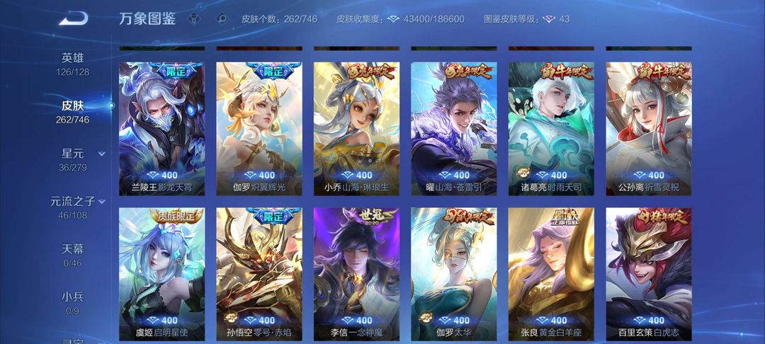 诸葛小乔双无双 瑶孙策双珍品 兰陵王战令传说 杨戬周年传说 伽罗荣耀典藏