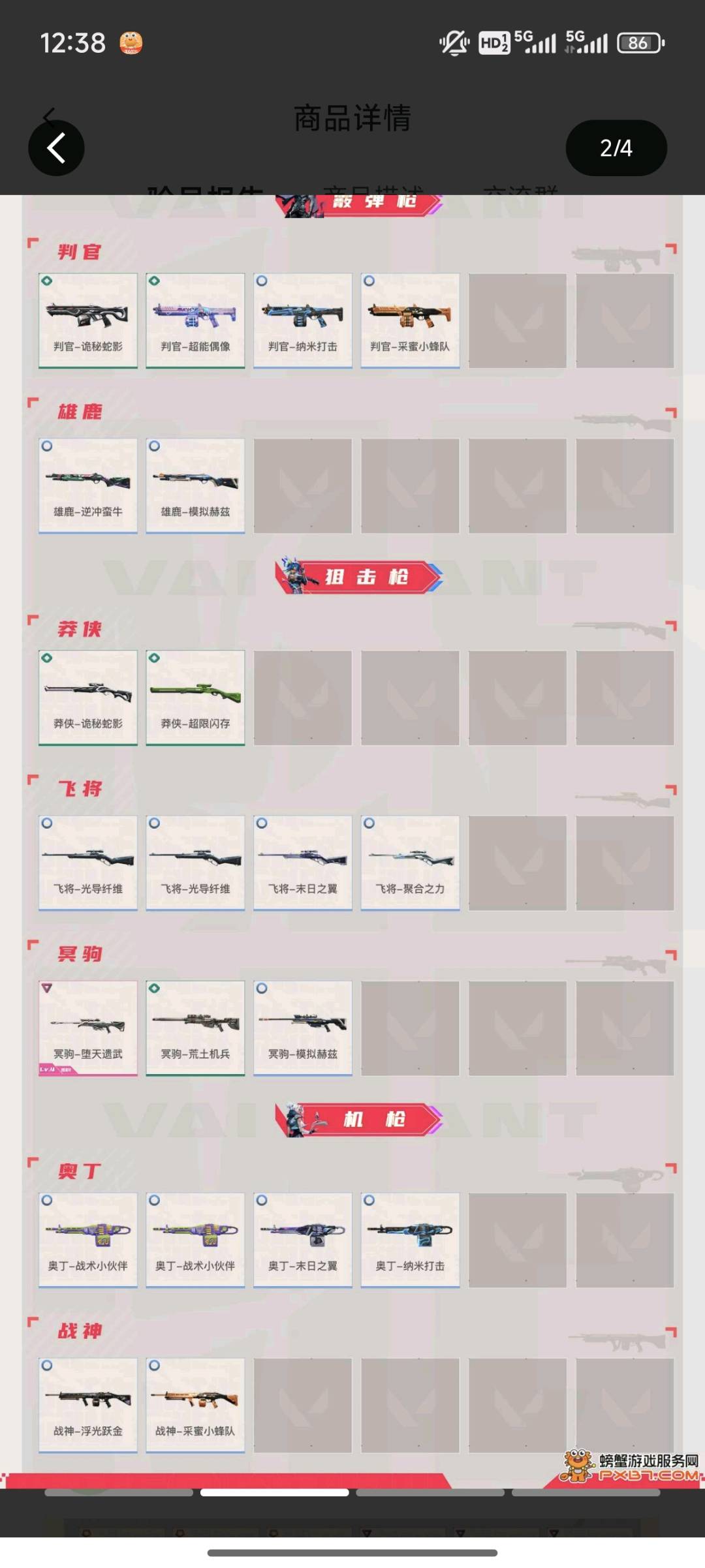 21、24冠军套,盖亚狂徒鬼魅,紫金狂徒,奇点正义,天界戍卫,剥皮小刀,遗武大狙,离子幻影,鱼缸狂徒,全息狂徒,混沌狂徒,奇点蝴蝶,掠影狂徒,噬影者蜂刺,神罚刀骇零,电音标配;剥皮小刀,盖亚的复仇 狂徒,掠影 狂徒,紫阙金琅 狂徒,天界神兵 戍卫,混沌序曲 狂徒,2021全球冠军赛 狂徒,