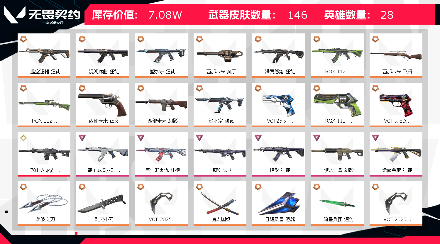 极品16刀⚡VCT爪刀⚡显卡爪剥皮黑波鬼丸⚡套装:显卡西部假面掠影⚡狂徒塑水盖亚混沌紫金幻影侦查协议;西部未来 奥丁,黑波之刃,剥皮小刀,VCT 2025 爪刀,盖亚的复仇 狂徒,虚空遗器 狂徒,掠影 戍卫,