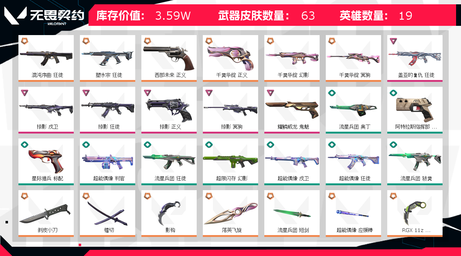 首页 > 租号大厅 > 无畏契约-wegame > wegame/wegame > 有高校特权 3w库存,剥皮/掠夺爪/显卡爪/镭切/盖亚/塑水宗/掠夺/混沌/西部正义,可排位禁赛拉黑