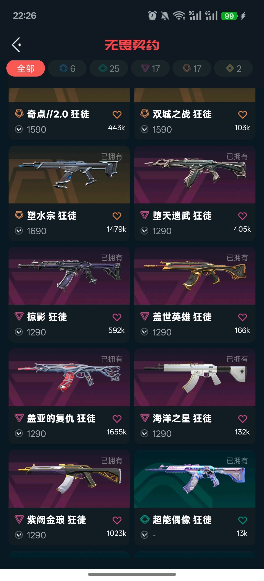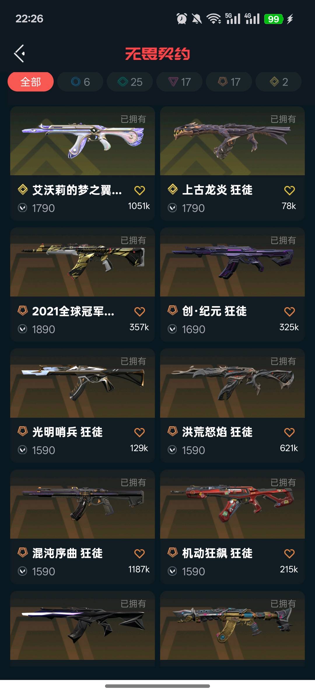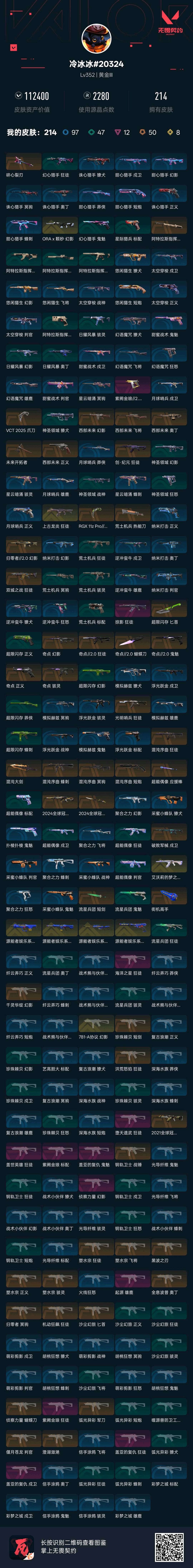 可排位 英雄27 武器皮肤数量177;西部未来 奥丁,黑波之刃,VCT 2025 爪刀,起源 雄鹿,偃月苍龙 判官,盖亚的复仇 狂徒,洪荒怒焰 狂徒,
