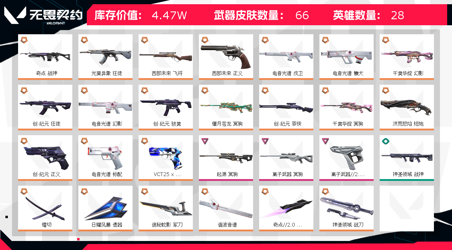 首页 > 租号大厅 > 无畏契约-wegame > wegame/wegame > 4.4w库存/光菜异象 狂徒/电音光谱全套/创 纪元全套/奇点//2.0 蝴蝶刀/诡秘蛇影 军刀/奇