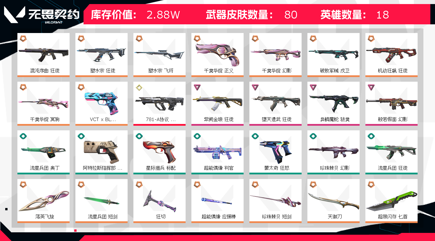 首页 > 租号大厅 > 无畏契约-wegame > wegame/wegame > 3w库/莲花套 混沌 塑水 紫金 堕天遗ak 恶鬼 莲花m4 781撩犬等 全英雄看图正常完单退押金