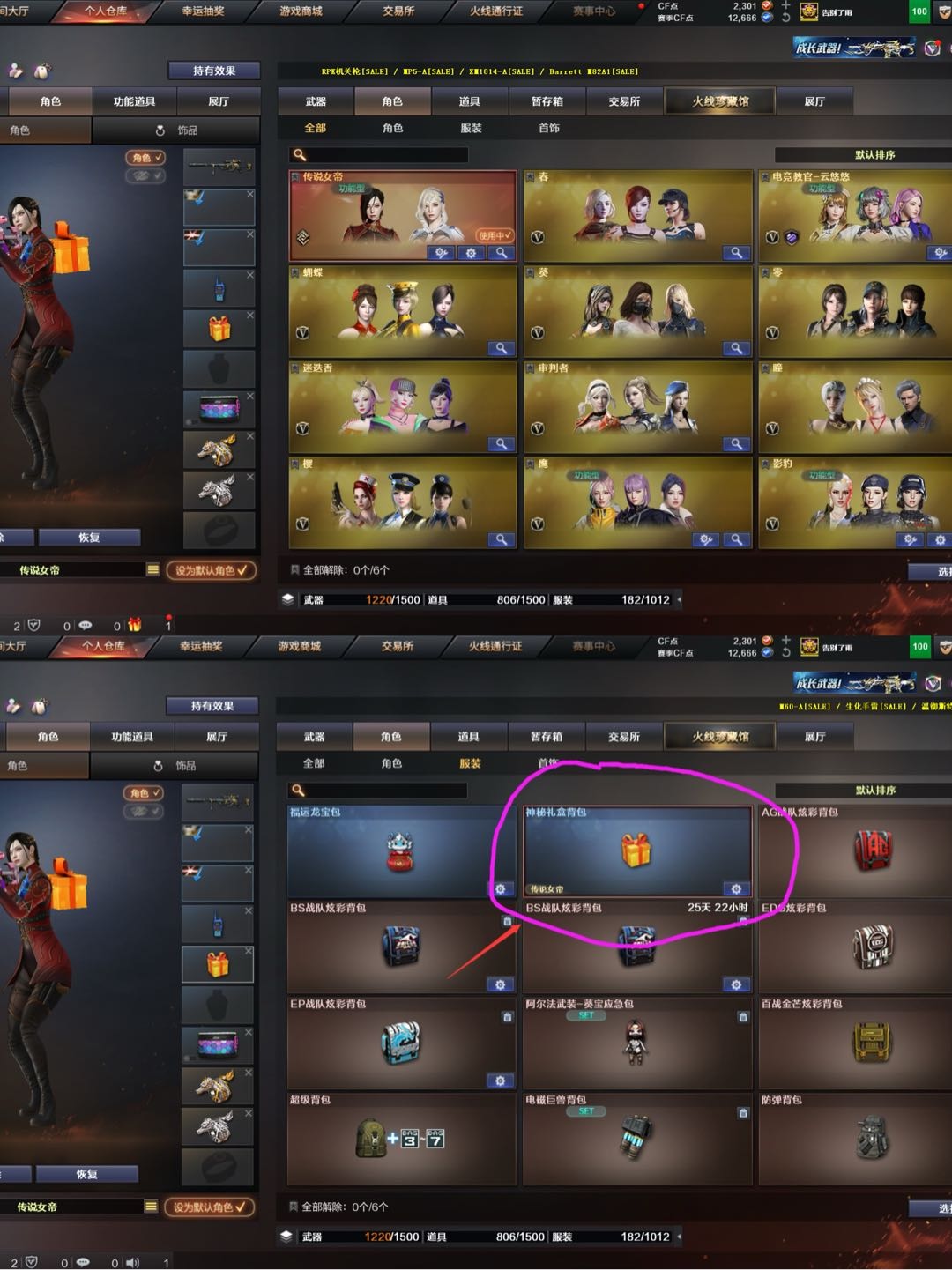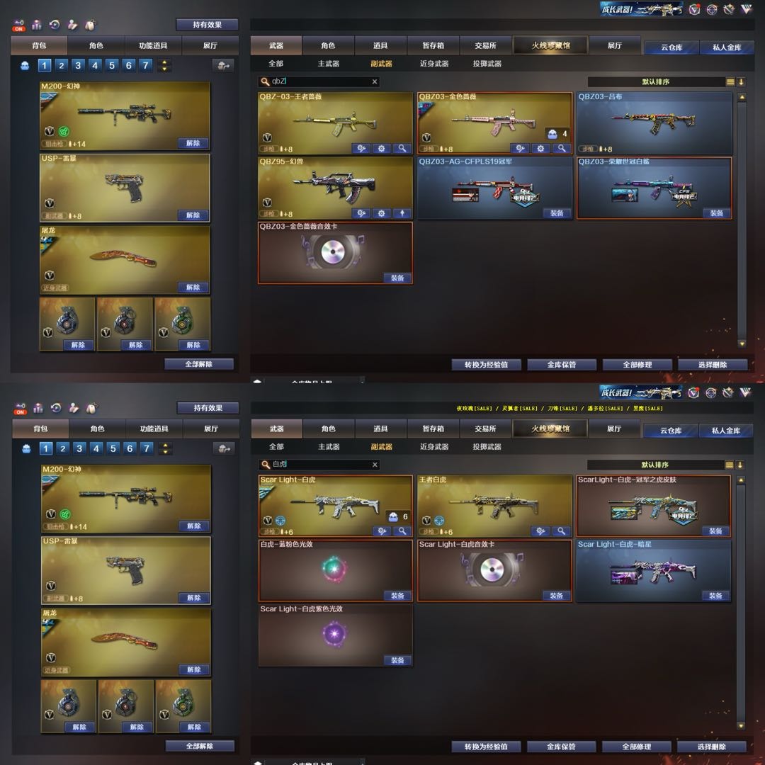 女帝/幻兽5套+金名/幻神星火9皮带卡/裁决巅峰3皮带卡/冠军白虎+星神/18把质量副武器/满音效卡