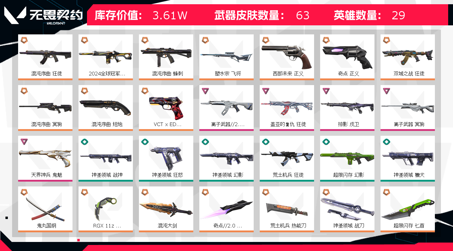 • 皮肤资产价值: 36125