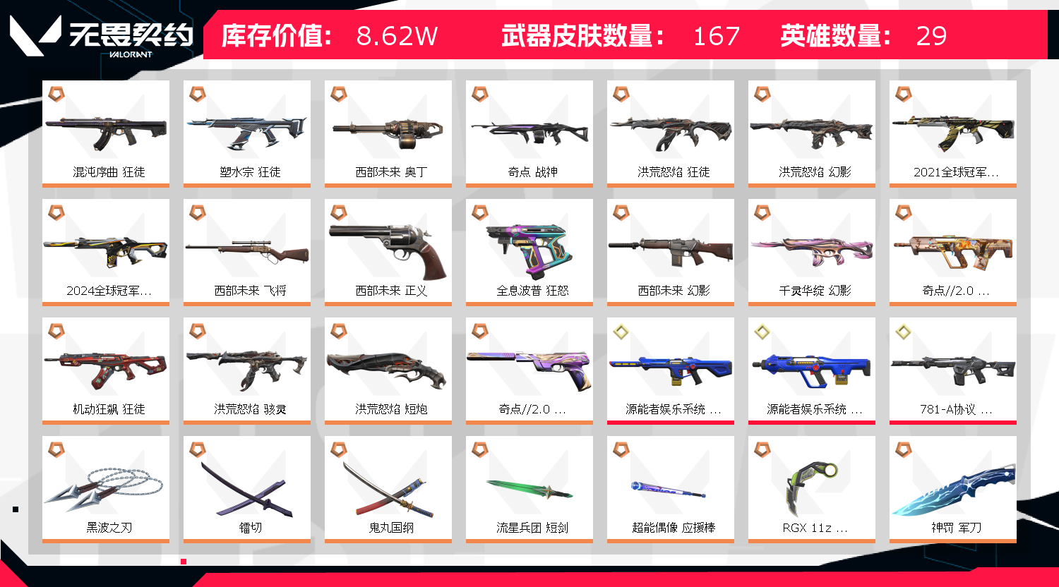 • 皮肤资产价值: 86160