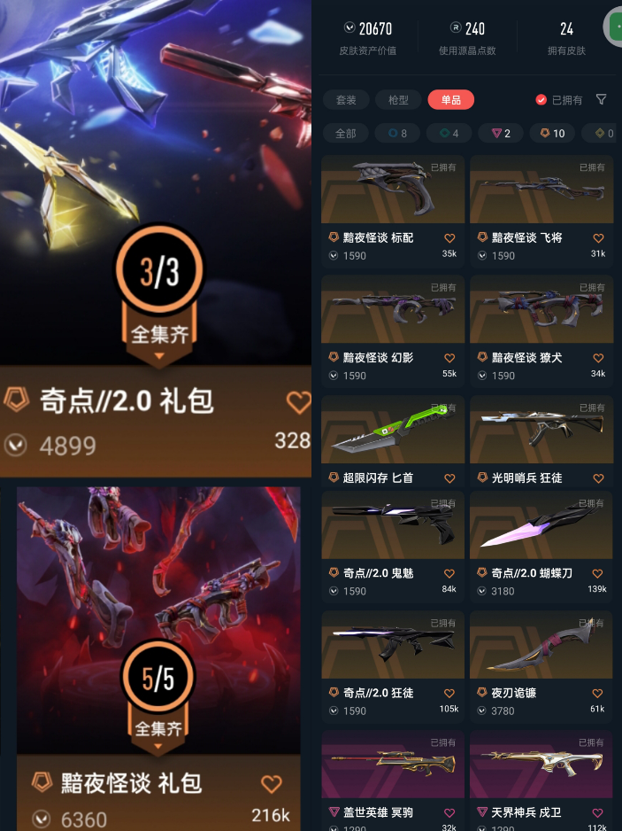 黯夜套/奇点2.0套/超限匕首/光明狂徒/盖世冥驹 /天界戍卫