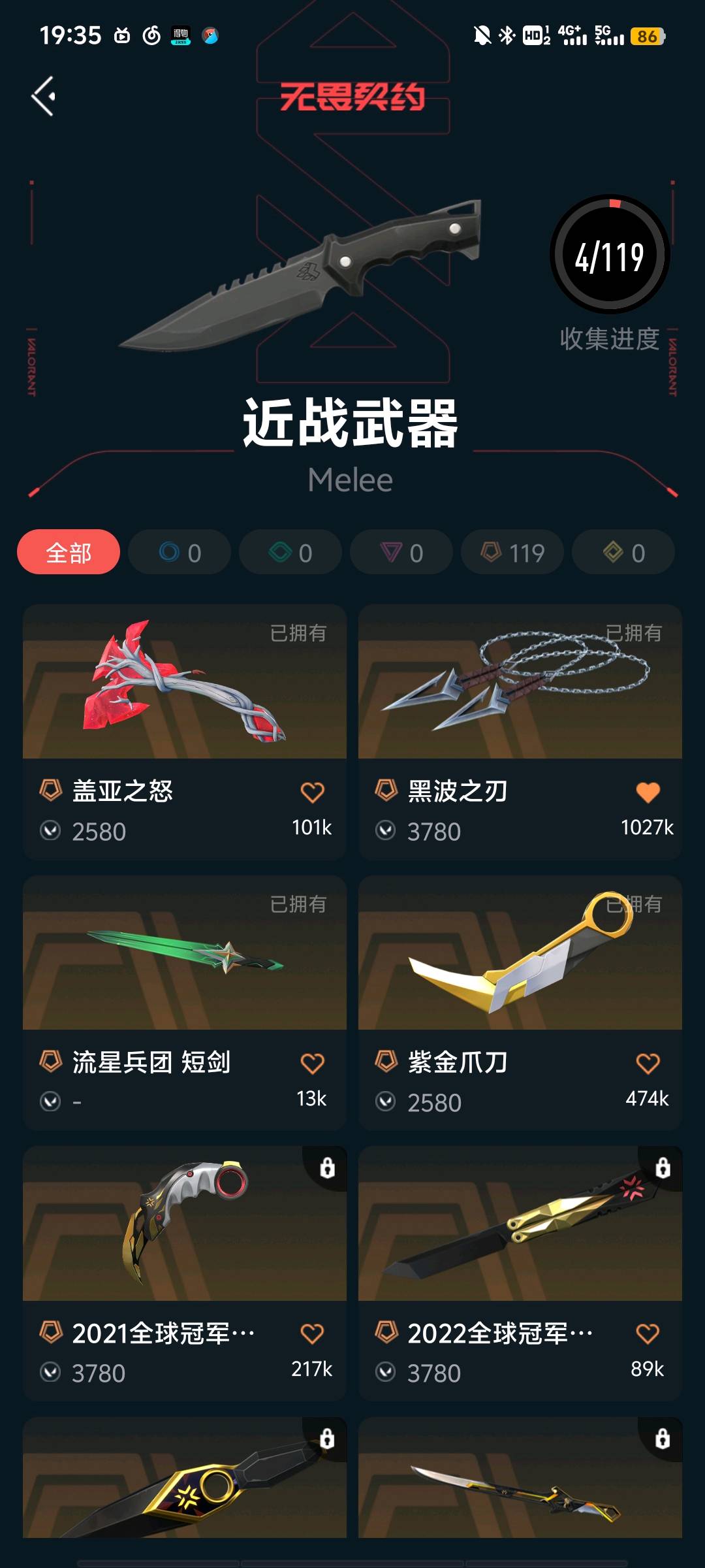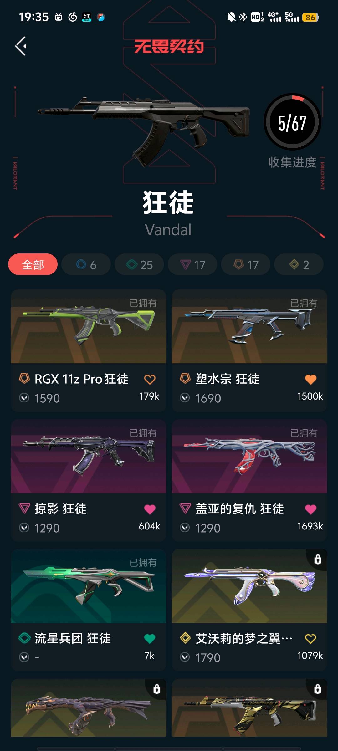 首页 > 租号大厅 > 无畏契约-wegame > wegame/wegame > 极品炸鱼号,刀:黑波之刃,紫金,盖亚斧头。ak :盖亚掠夺,塑水宗显卡 。