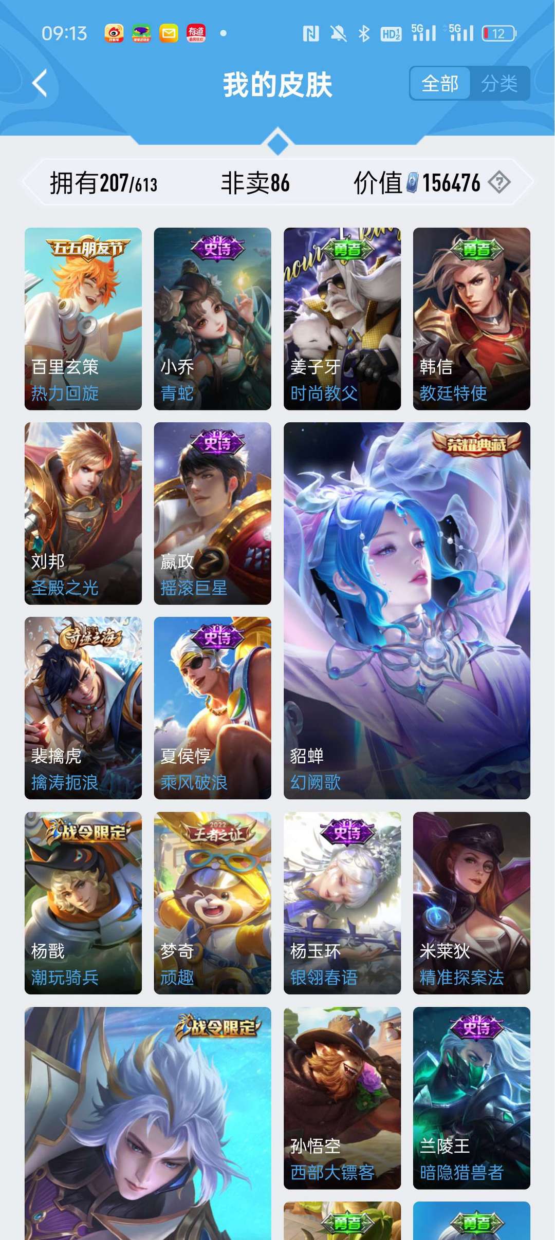 顶级V10➕613皮➕18典藏➕5无双韩信无双个性粉小兵皮已秒❤️墨子亚连吕布貂蝉皮❤️❤️龙年全套皮曹操消费皮已秒❤️8星元❤️多天幕+按键