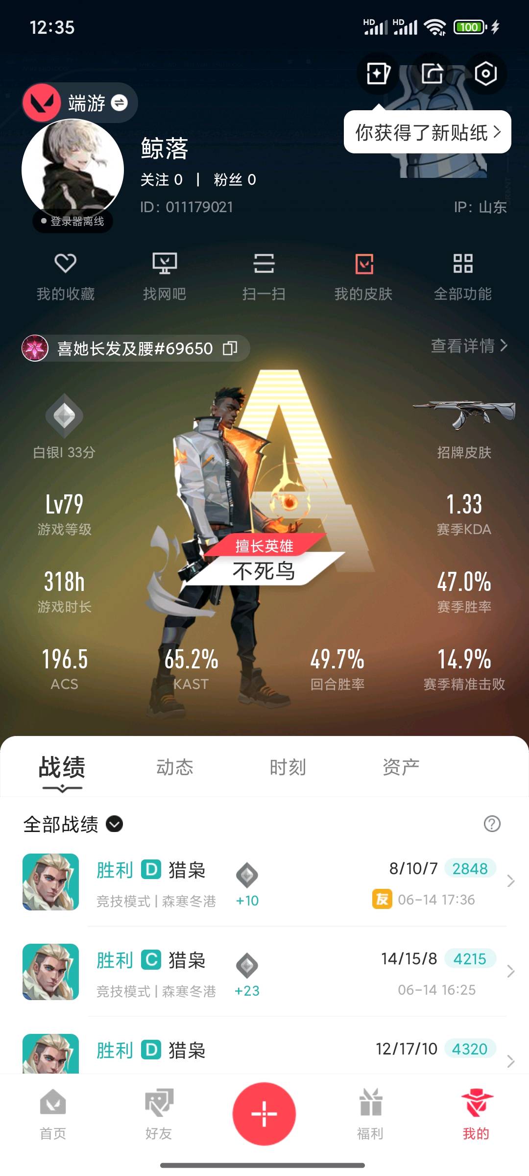• 游戏区服:无畏契约-wegame / wegame / wegame