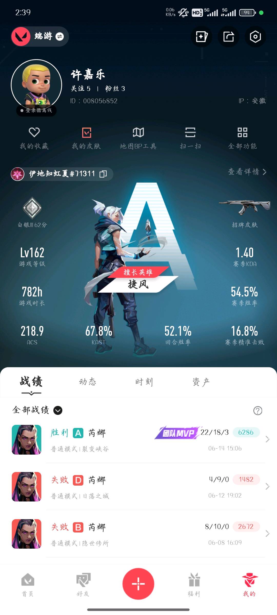 • 游戏区服:无畏契约-wegame / wegame / wegame