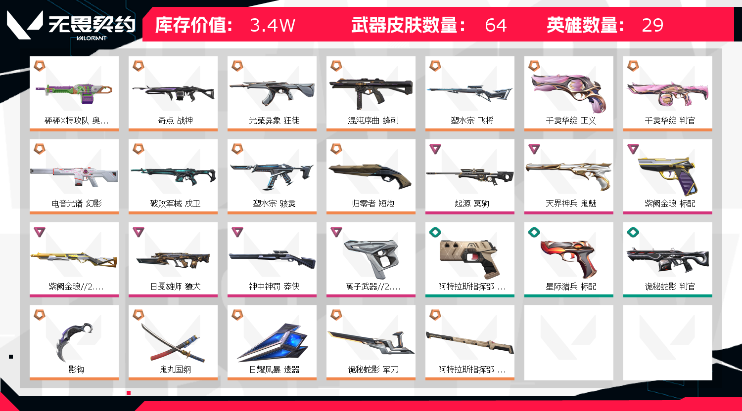 全英雄/鬼丸太刀/掠夺爪刀/光荣狂徒/光谱幻影/每把武器都有毕业皮肤!;砰砰X特攻队 奥丁,奇点 战神,光荣异象 狂徒,混沌序曲 蜂刺,塑水宗 飞将,起源 冥驹,天界神兵 鬼魅,