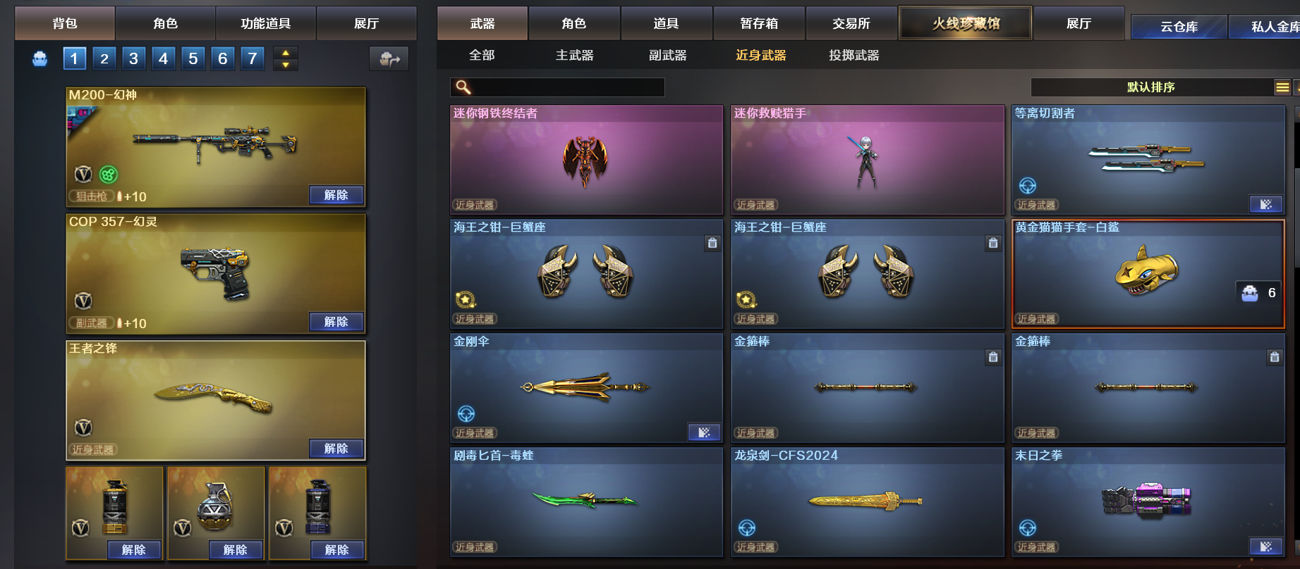 100V✅幻神世冠白鲨✅传说艾丽莎+隼✅cop✅夜影黄金鲨臂✅刀战✅生化小刚清道夫✅挑战5黑白虎