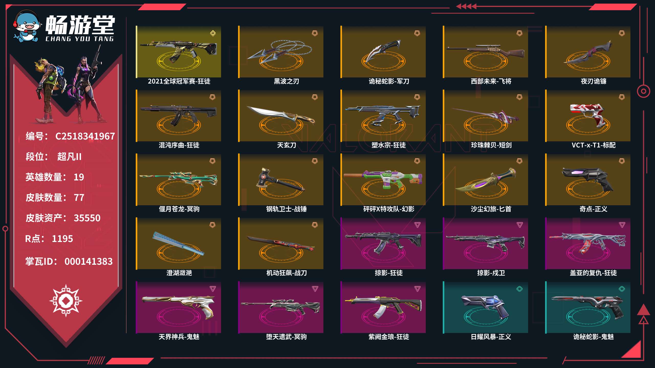 可排位✨最强赋能✨当前段位源能战神✨赋能挂坠✨21冠军狂徒✨奇点正义✨弃王狙✨混沌狂徒✨塑水狂徒✨黑波之刃✨苍龙冥狙✨ 禁止开挂!!禁止开挂!!禁止开挂!禁止开挂!禁止开挂!禁止开挂!禁止开挂! 本公司所有账号已在济南市公安局申报虚拟财产保护所有开挂开美化包等第三方违规软件 导致账号封禁的将会联合警方平台经理追查 本店铺账号均为数万元起步切勿抱有侥幸心理 据《刑法》第二百七五条故意毁坏财产物罪:故意毁坏公私财物,数额较大处罚7年以下有期徒刑已有1例一经发现追查到底望各位自重不要挑战法律 异地冻结请稍等1分钟,可以尝试二次登录,十五分钟内撤单,免费。 😘 异地冻结请稍等2分钟,可以尝试二次登录,十五分钟内撤单,免费。 😘 异地冻结请稍等3分钟,可以尝试二次登录,十五分钟内撤单,免费。 😘 1. (请点击解除冻结按键稍等五分钟)登陆界面稍等2分钟会上去(自动登录)老板不要着急,一次不行多来几次wegame界面要耐心等2分钟 2.密令会自动输入如果一次不成功多来几次 3..进入wegame后到弹短信验证处,关闭掉,重新下载无畏契约这个游戏即可成功上号,记住。这个方法百分百上号成功!就是进入wegame重新下载无畏契约游戏!!!百分百成功!! 4.请及时续租不要挂机,到时不下线,但是下一个会挤号导致挂机,所以请及时续租,导致禁赛的一律拉黑 5.祝老板玩的愉快,喜欢可以收藏关注 !开挂必追究,不拿到赔偿不罢休! 如果上号正在游戏中,是上个租客到时不下线导致的,不是号主在玩,请帮忙打完这局,谢谢了,为了防止顶号,请您及时续租获得更好的游戏体验;黑波之刃,盖亚的复仇 狂徒,掠影 戍卫,掠影 狂徒,紫阙金琅 狂徒,混沌序曲 狂徒,塑水宗 狂徒,