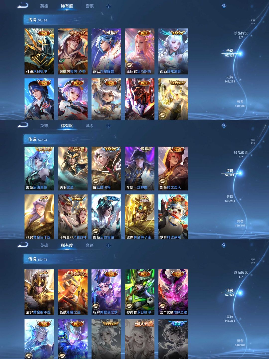 上不去看最后一张图贵族10,695皮伽罗典藏124传说,7无双,7珍品,群星魔术团,落雪白狼,龙年全满,曦炫引,战鼓燎原时之奇旅,隐龙天啸,妄想实况,琥珀纪元