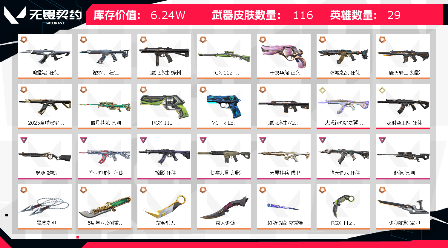 • 武器皮肤数量: 116