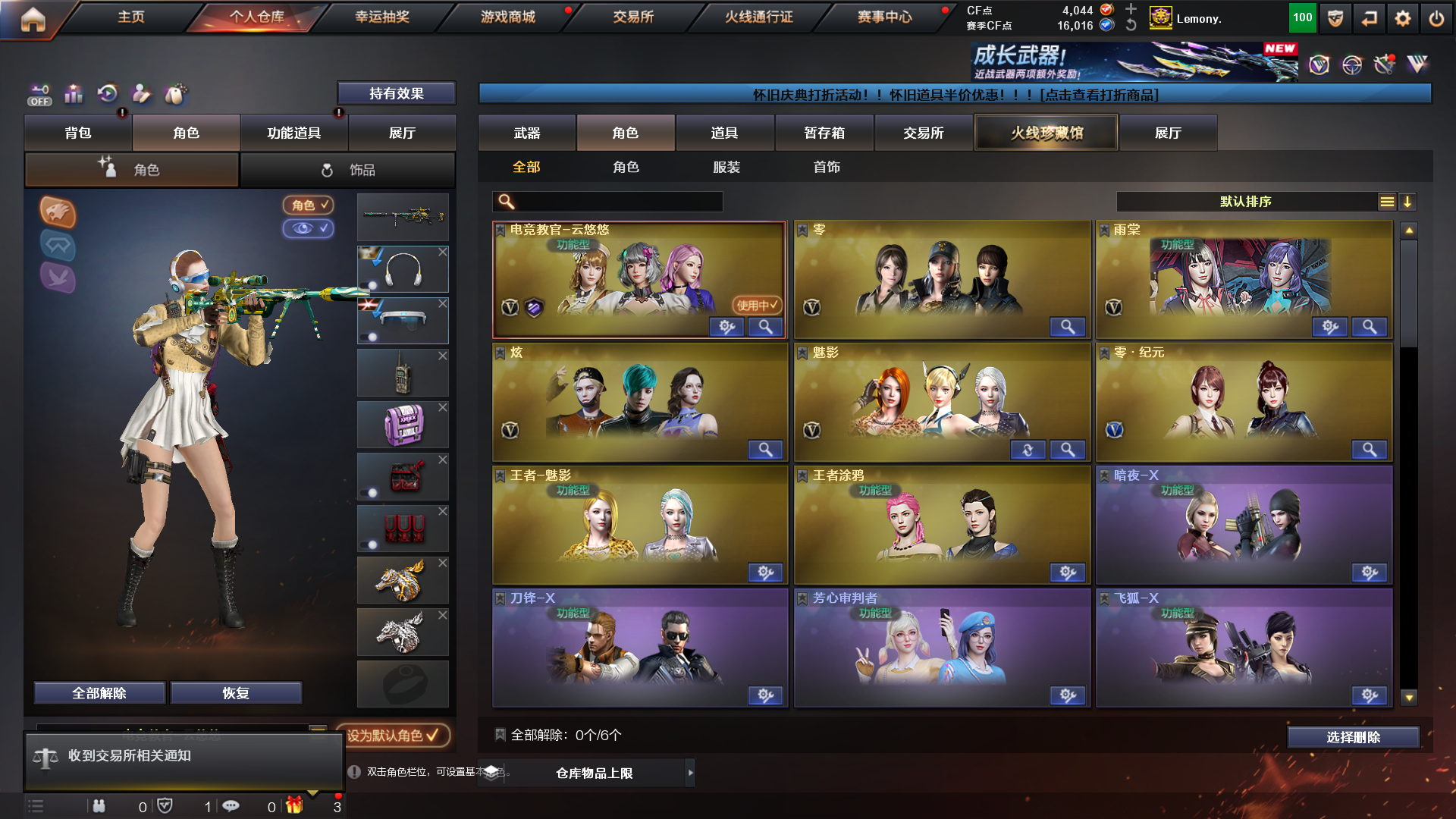 西部战区:四川、重庆、陕西及云南的游戏账号。 编号E279号|88V|陕西一区|昵称:Lemony.(VIP0) 本号装备更新于:2025年6月22日 【皮肤】:幻神青鹤皮肤、黑骑士-CFS2021x2、M4A1-千变-孔明皮肤、雷神-传奇N9皮肤(首发)、荣耀之锋、荣耀之怒、雷神-荣耀之魄、无影耀金、黑骑士耀金、AG毁灭、火麒麟传奇EVEN、火麒麟-CFSTARx3、修罗-CFSTAR、天龙-CFSTAR、雷神-能量核心、天龙-能量核心、黑骑士-暗月、黑龙-暗月、战神-紫绶金章皮肤、毁灭-黑大圣皮肤、火麒麟-平天大圣、AK47-B-常胜将军-孙权x3、AK47-B-常胜将军-刘备、AK47-B-常胜将军-曹操x2、 【角色】:零、魅影、炫、雨棠、电竞教官-云悠悠、猎狐者、飞虎队、潘多拉、复仇者、堕天使、深海之兰、夜玫瑰、陈龙野、娜塔莎、救世主、灵狐者、烈锋、王力宏、零-水下丽影、猎狐者-11周年、影武者-X、灵狐者-X、潘多拉-X、救世主-X、王者-魅影、暗夜-X、刀锋-X、灵狐者-职业经理、女战神、麻雀、王者涂鸦、圣诞潘多拉-X、灵狐者-职业经理、刀锋-X、暗夜-X、王者-魅影、救世主-X、潘多拉-X、风暴女、嘉年华灵狐、猎狐者-追月、兰妹妹、金戈、斯沃特、嘉年华灵狐、风暴女、超能女侍、斯沃特-X、芳心审判者、 【王者】:COP 357-雷霆王者-觉醒版、王者之心-觉醒版、烟雾弹-雷霆王者x4、高爆手雷-雷霆王者x3、炫金天龙、斯泰尔蝴蝶(生化迷你)、天龙曼陀罗、COP-旗袍、 【主武】:M200-竞技荣光(最新首发年套)、掌上武器-葫芦兄弟(永久绝版)、牛牛-AK47、传说暗裔(新品首发)、AK47-B-身先士卒、Kar98K-星神(首发)、烈龙x2、盘龙、加特林炼狱、M200-幻神、QBZ03-金色蔷薇、毁灭、天龙、裁决、极光、雷神、黑龙、火麒麟x2、黑骑士、死神、黑鲨x2、猎神、AK47-B-战士、AK47-B-战神、魂·火麒麟-百城、黑骑士-海王、御·雷神-小白龙x2、御·毁灭-怒火大圣、机甲撕裂者III、源·毁灭、源·天龙、源·天启x2、源·雷神、源·火麒麟x2、源·超新星、源·青龙、源-黑龙、白羊座、神罚、神圣爆裂者III、M200-赤血龙魂、黑骑士-摸金校尉、HK417-赤血龙魂、98K-黑金、98K-冰雪霸主x2、黄金乌兹双枪、黄金AK-47、AK47万圣节、斯太尔-封神、御·炼狱-女娲、御·雷神-烈虎、雷神-赛博幻想、 【副武】:Colt1911-宇航兔兔、柯尔特-竞技荣光(最新首发)、荣耀世冠-柯尔特(首发)、修罗x2、沙鹰-天神x2、USP-雷暴、COP-堕天神、COP-小白龙x4、新USP-怒火大圣x2、新USP-战龙、MAC-10-涂鸦、G36C-宇航兔兔、源·天神、麦特左轮-黑金神龙、修罗-摸金校尉、COP-绚樱、COP-青花瓷x2、迷你手枪、沙鹰-青龙、Colt 1911-大黄蜂x2、COP357、 【近身】:无影-神兵利器、擎天-竞技荣光(最近年套)、金刚伞(全新)、屠龙、擎天、龙啸、斩神刀-雷暴、唐刀-戎马一生、唐刀-初出茅庐、斩魔刀-怒火大圣、雷神之怒(大锤)、青花扇、手斧-n1ce冯永强、尼泊尔-炎龙、军用铁锹-飞龙在天、军用铁锹-赤龙、破天灵蛇、暗金鹰爪x2、鹰爪-枪王排位、黄金军用手斧、 【投掷】:高爆手雷-竞技荣光x3、烟雾弹-竞技荣光、闪光弹-竞技荣光、虎牙手雷(绝版稀有)、斗鱼手雷(绝版稀有)x2、烟雾弹-雷暴x4、闪光弹-雷暴x4、高爆手雷-雷暴x4、深渊终结者手雷、凤凰之息x2、手雷-CFS2017纪念版x2、烟雾弹-CFS2017纪念版x2、闪光弹-枪娘、 【光效】:AWM-天龙紫橙光效、AK47-火麒麟绿色光效x2、M4A1-雷神绿色光效、AWM-天龙绿色光效、M4A1-黑骑士紫色光效、汤姆逊-烈龙蓝色光效、M4A1-雷神紫橙光效、盘龙蓝色光效、雷神蓝粉色光效、天龙蓝色光效x2、 【玩偶】:大乔玩偶、三国-吴国玩偶x2、三国-魏国玩偶、三国-蜀国玩偶、黄金幸运猪猪玩偶、深渊红龙玩偶、战舰玩偶、电磁巨兽玩偶、零-水下丽影玩偶、胡司令玩偶、地狱终结者玩偶、幸运牛仔玩偶、 【道具】:金色蔷薇音效卡、M200-幻神音效卡、黑骑士音效卡、超级对讲机(加10%子弹)、超级背包、炫彩背包、夺命之镰、防化服x2、迷雾幽灵、灵魂忍者(矮子)、绿色巨人、疯狂宝贝、XROCK炫彩背包、步枪弹匣(488天5小时)、狙击枪弹匣(178天2小时)、7个背包;USP-雷暴,荣耀世冠-柯尔特,电竞教官-云悠悠,RPK-盘龙,QBZ03-金色蔷薇,M200-幻神,Kar98K-星神,