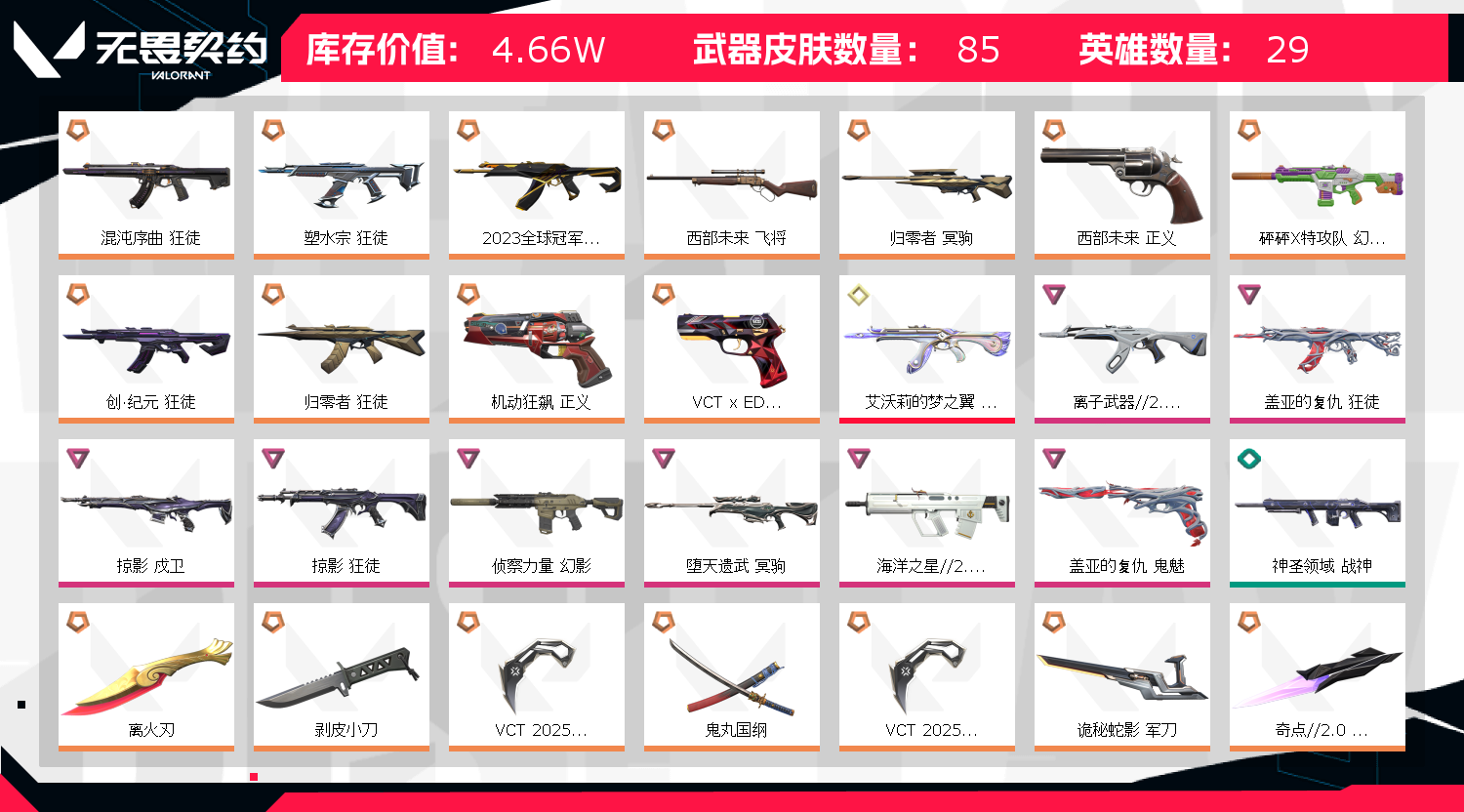 冻结秒结请稍等;离火刃,剥皮小刀,VCT 2025 爪刀,盖亚的复仇 狂徒,掠影 戍卫,掠影 狂徒,侦察力量 幻影,