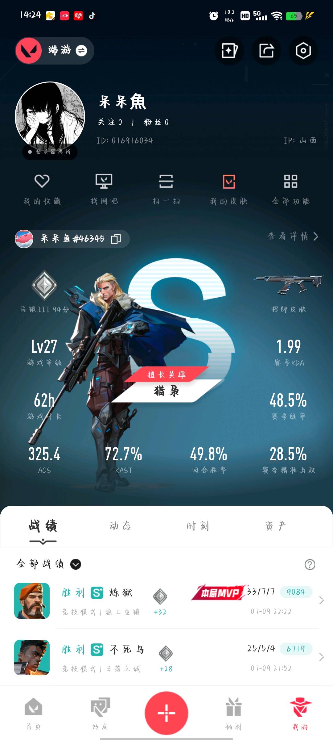 • 游戏区服:无畏契约-wegame / wegame / wegame