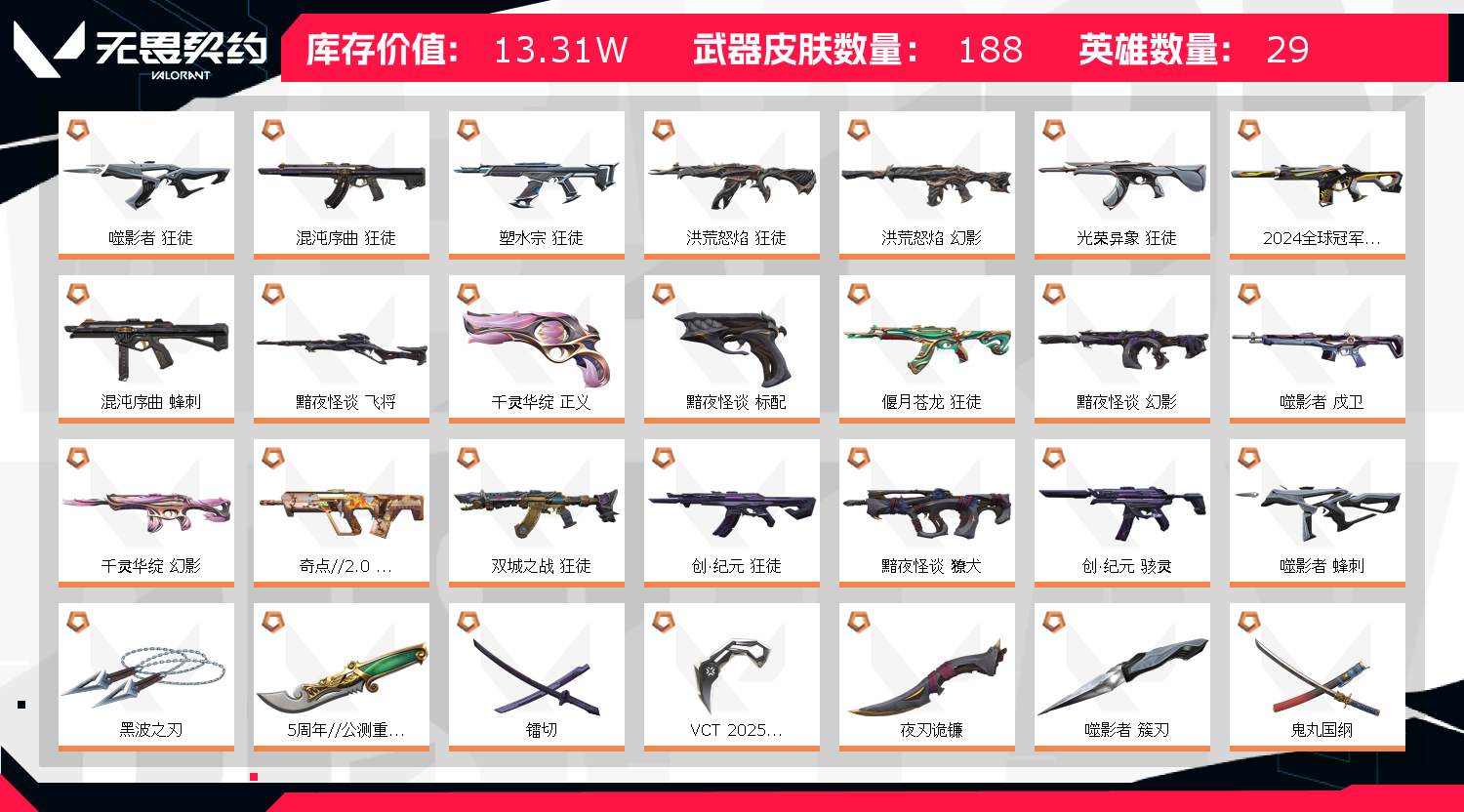 • 武器皮肤数量: 188