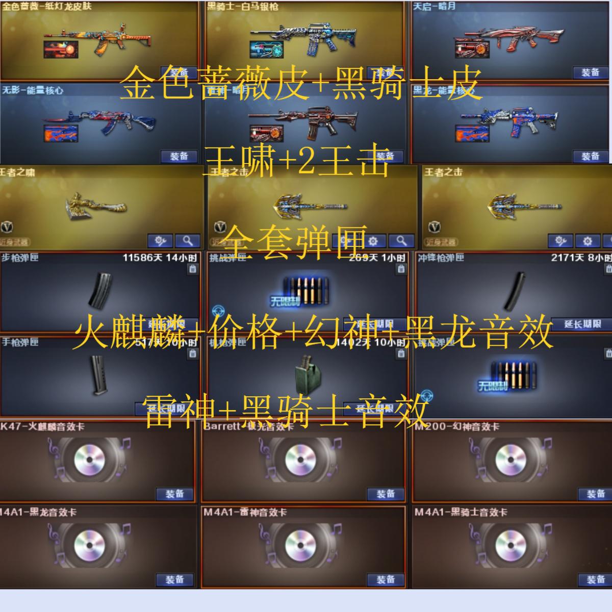 240V35王者2炫金可排位/传说艾莉莎/传说光耀/传说圣灵/传说梦魇/M200幻神+幻神周瑜+幻神音效卡+COP堕天神/王者幻神觉醒/Barrett朱雀/HK417-朱雀/白虎/QBZ03-金色蔷薇/QBZ-03-王者蔷薇/7盘龙4炼狱9烈龙+斯泰尔蝴蝶+死亡之眼/8黑骑士/雷霆套装+6套雷霆雷/夜魔套装+5套夜魔雷/【四防】王者葵貂蝉/王者魅影【四防】/王者零华冠丽服【四防】/王者潘多拉【四防】/职业选手+N9语音包+绝迹语音包/火麒麟音效卡/雷神音效卡/极光音效卡/黑龙音效卡/毁灭音效卡/黑骑士音效卡/金色蔷薇-纸灯龙/黑骑士白马银枪/毁灭耀金/毁灭星空/火麒麟雷神/天龙秘银/毁灭-CFS2018/雷神星空/火麒麟AG战队/天龙传奇白鲨/天龙传奇70KG/雷神荣耀之魄/雷神-精英刀锋/火麒麟绝迹/雷神小红/天龙曼陀罗/集束激光-超越MAX/暴君乱世-超越Max/致命乱世-超越Max/寒冰征服者-超越Max/毁灭征服者-超越Max/机甲撕裂者3/末日审判者3/KAC-圣炎切割者3/封神放逐者3/深渊巨龙咆哮3/激光毁灭者3/神圣爆裂者3/AA12-擎天柱3/黑龙吞噬者3/试炼破坏者3/阐释者3/惩戒者3/金刚伞/CAT猫枪/Cat-刀锋/金色小号/牛牛AK/王者炎心觉醒/王者之城觉醒/王者之心觉醒/王者之鲨觉醒/王者之幻觉醒/王者火魄觉醒//王者之戮觉醒//王者之魄觉醒//王者之势觉醒//王者之武觉醒//王者之光觉醒//王者之力/王者之怒觉醒/王者之魂//王者之刺觉醒/王者之锋/王者之击觉醒/王者之啸觉醒/炫金火麒麟/炫金黑龙/电竞教官云悠悠/堕落女神/葵/零/迷迭香/乔伊教练/审判者/瞳/王者瞳闭月羞花/王者复仇/王者玲珑/王者之瞳/新海豹突击队/樱/炫/魅影/云海玲珑/烟雾保护头盔/闪光护目镜/虎牙炫彩背包/超级背包3-7+扩展背包/永久防弹衣+永久防弹头盔;电竞教官-云悠悠,传说艾莉莎,RPK-盘龙,QBZ03-金色蔷薇,M200-幻神,Scar Light-白虎,