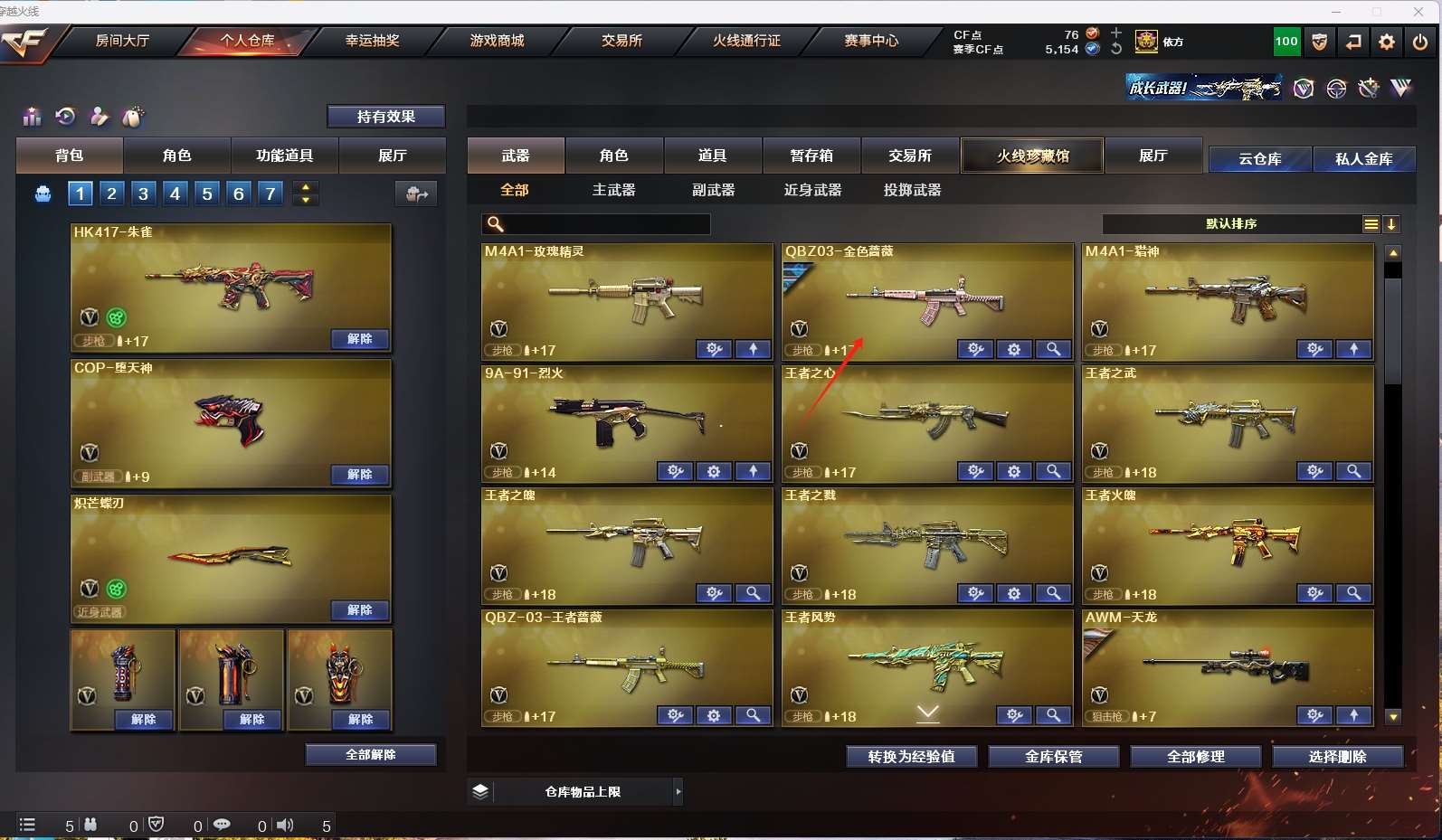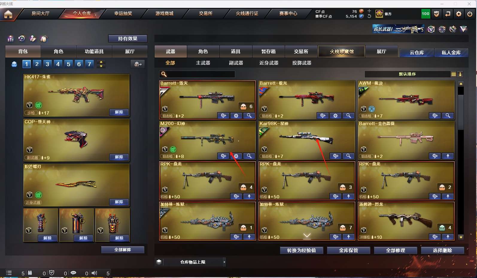 四防传说女帝】 【m200-幻神+n92022mvp+幻神-宠儿】 【98k星神+音效卡+傲竹金蛇】 【传说圣灵】 【传说光耀】 【g36c幻影】 【白虎】 【qbz王者蔷薇】 【qbz金色蔷薇+破浪逐光+量子蔷薇】 【武圣套】 【幻灵套】 【堕天神套】 【qbz银翼】 【火麒麟+音效卡】 【黑龙】 【雷神+音效卡+雷神-宠儿+雷神-荣耀之魄】 【黑骑士】 【毁灭+音效卡+星耀】 【极光+音效卡】 【裁决+异化之源】 【王者之心 王者之武 王者之魄 王者之戮 王者火魄 王者风势】 【千变 无影 死神 天启 黑鲨 青龙 hk417-朱雀 猎神】 【12手呛 修罗*4 天神 cop堕天神*2 cop幻灵*2】 【19近战 雷霆雷*4 龙啸 擎天*2 麒麟刺*2 幻灵之锋*2 炽芒蝶刃蝴蝶刀】 【手雷 堕天神*6 幻灵雷*7 竞技荣光 】 【四防 影豹 王者涂鸦 职业经理】 【角色 云悠悠 葵 零 迷迭香 司雨 樱 魅影】 【星神音效卡】 【ag炫彩背包 炫彩背包 ep炫彩背包 热带奇洋炫彩背包;炽芒蝶刃,传说女帝,隼,电竞教官-云悠悠,RPK-盘龙,QBZ03-金色蔷薇,G36C-幻影,